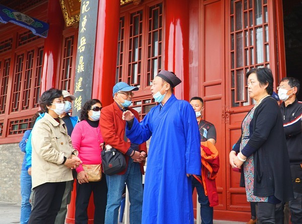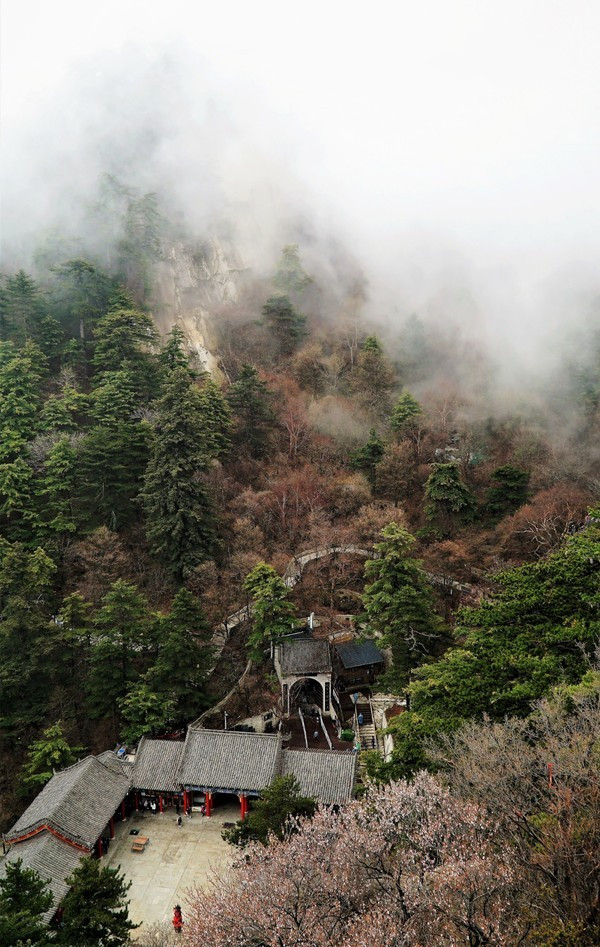 西岳庙是道教圣地,是历代帝王祭祀华山神的地方。庙宇12万多平方米,差不多一半是园林。整个寺庙布局严谨,1800多米的城墙围绕,有“小故宫”之称。庙内有一批上千年的古柏,使庙宇沉浸在2100多年来的厚重历史中。也许因为游客稀少,一位道士抢了导游的话语权,从华山的形状到我国的传统文化,一直到现在的抗疫,口若悬河,为中华文明叫好,赢得了我们多次掌声。