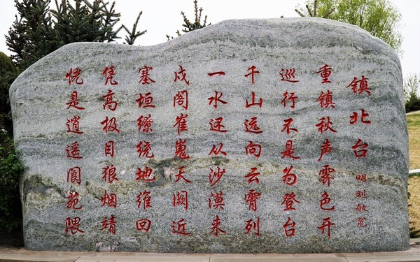 镇北台是长城中一个瞭望台,却与嘉峪关、山海关并列为长城三大奇观,被誉为“万里长城的一块坚硬脊椎骨”。镇北台大门前有一副对联:南蔽秦陇瞰河套榆塞固垒震九边;东连山海西接嘉裕万里长城第一台。