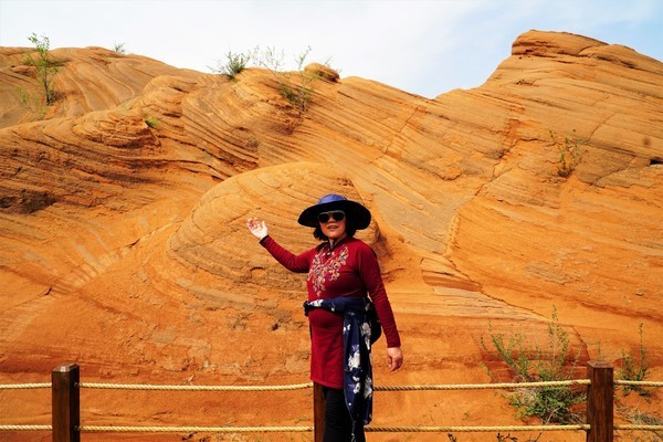 美国波浪谷,每天只安排20名游客。其中,一半在全世界报名游客中摇号产生。另一半,在现场摇号产生。我们没有成为幸运的游客,但是,在安慰赛上,我们可以参观类似波浪谷景点的机会,每天也只有10个名额哦。相比较的话,美国那里波浪的起伏更大一点。