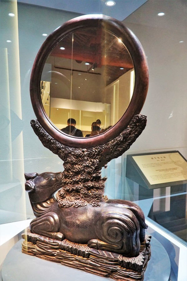 ▲清代酸枝木的犀牛望月镜,是镇宅之宝。