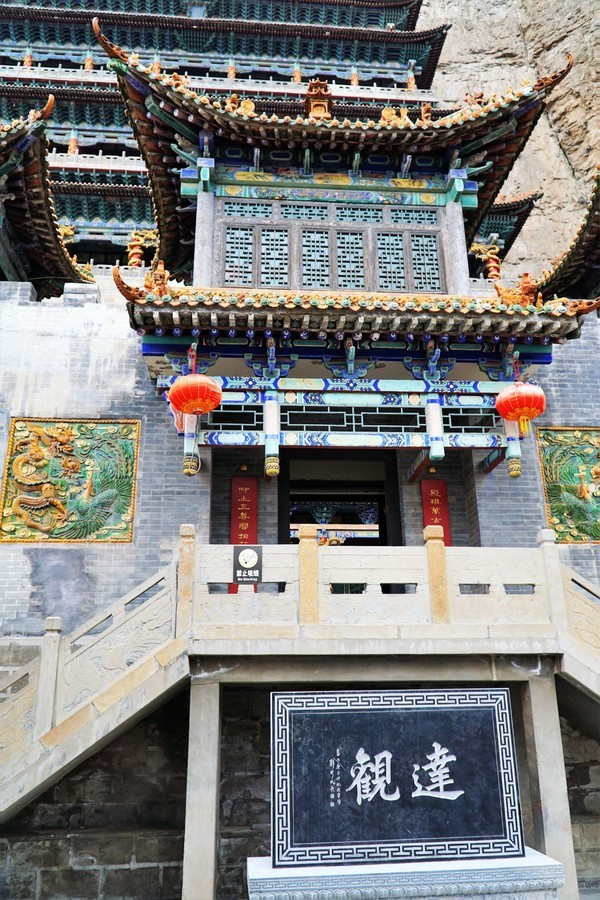 大罗宫高110米,13层,自唐代开始兴建,雄伟地矗立在悬崖边。1940年遭日军焚毁,1998年重建。我们乘电梯到6楼,然后,经过第十二层群仙殿,到达第十三层藏经阁。由于没有钥匙,无缘浏览珍贵经书,也无法偷学武功秘籍