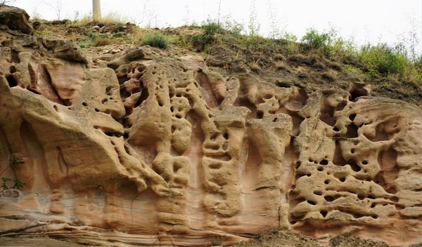 碛口的黄河岸边,有一段“画廊”:经长年河水冲刷,黄土形成奇形怪状的图案。船老大一边开船,一边介绍一幅幅画面的意思。
