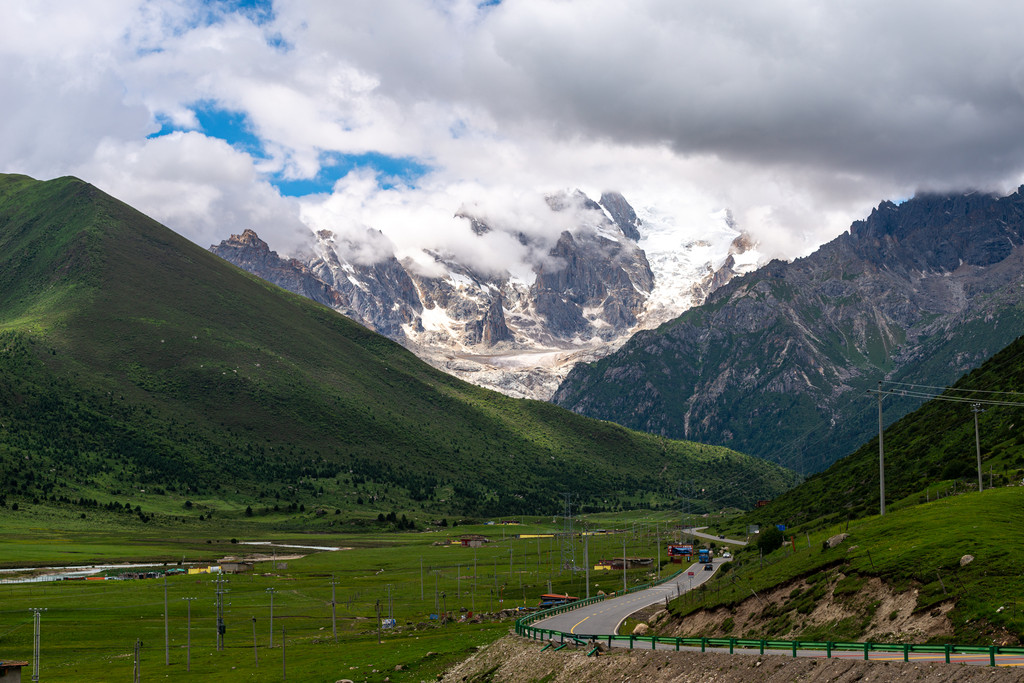 远眺雀儿山,雀儿山位于甘孜县和德格县之间,海拔6168米,途中有一处雀儿山的最佳观景点,云雾缭绕,雀儿山的山尖被云雾遮挡,没能看到她的全貌,不过也已经很美了