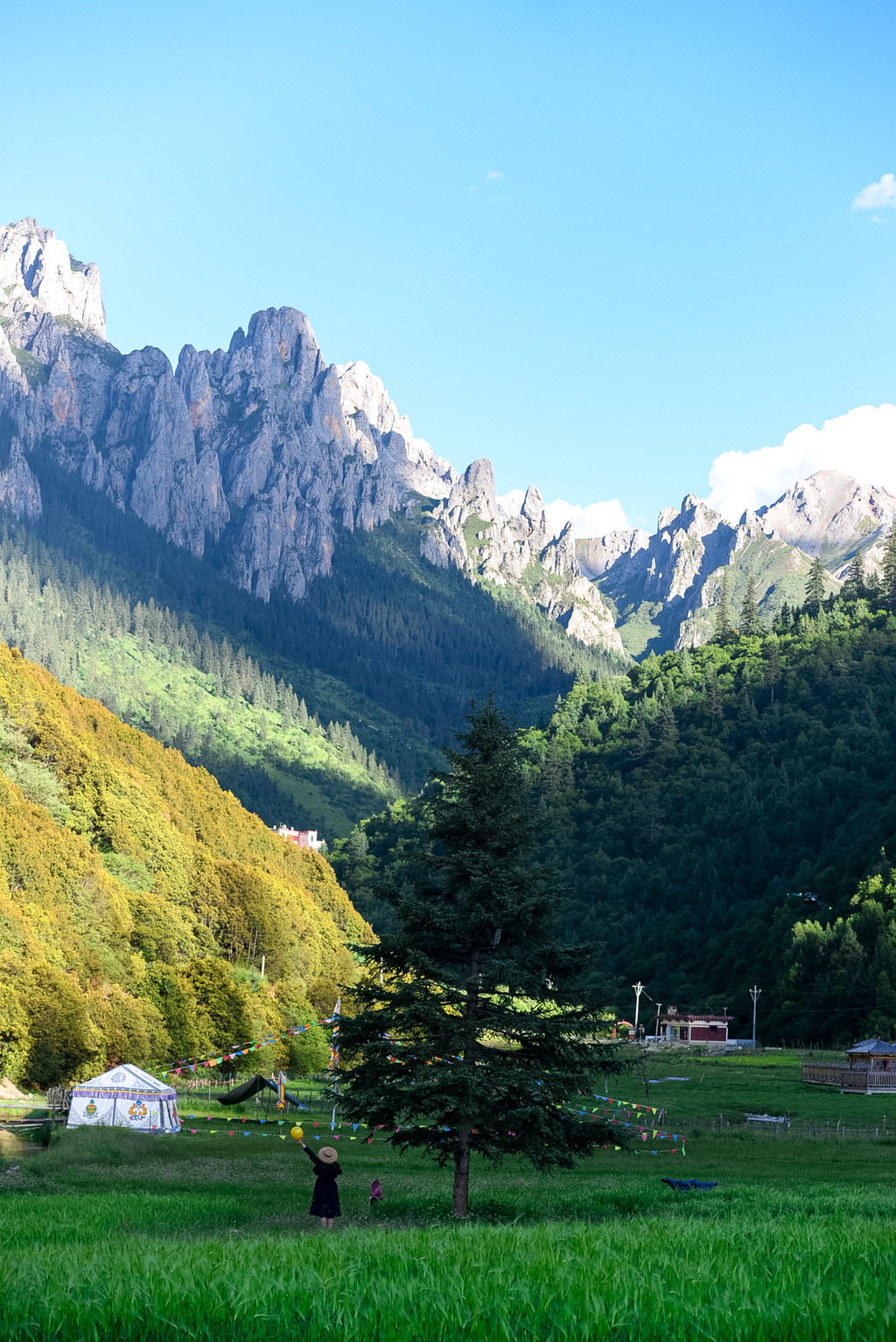 参观完岗托村,前往雪巴沟沟口,今天晚上就住在这里啦,有时间的话可以第二天进雪巴沟逛一逛,据说还是很美的,我们因为时间原因没有进沟,不过去雪巴沟的路上也很美,晚上还可以看到银河哦。