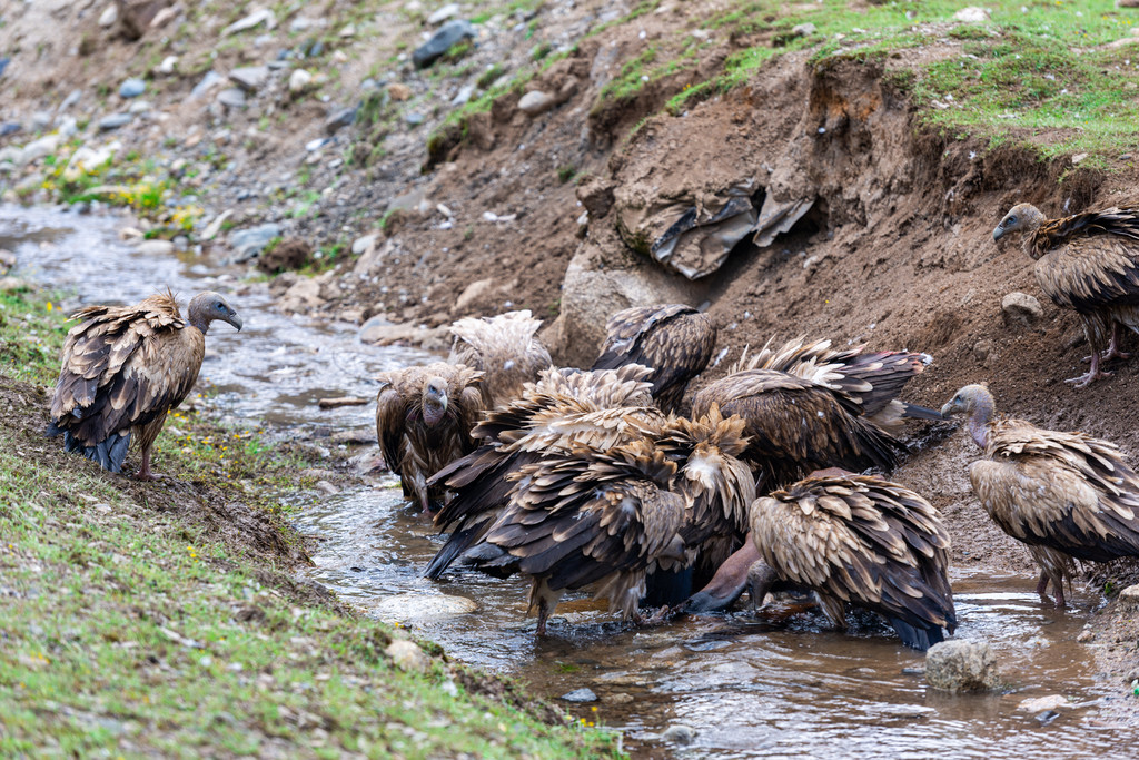 就在我们行车的路边上,竟然让我们看到了一群秃鹫正在觅食,上次看到这么多秃鹫还是在色达的天葬台,但只能远观,这次可以这么近距离看到真的很惊喜,我们悄悄的停车车,静静的看着它们。