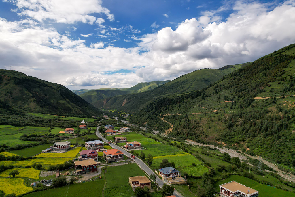 道孚民居,堪称世界民居建筑“双绝”:一绝是其与众不同的特色,二绝是因为天然林保护工程的实施,如此这般的“大木屋”恐怕难以再造,绝版了。在离道孚县城几公里的格西乡,可以将这里尽收眼底,是道孚民居的最佳拍摄点,如果有无人机,可以有更立体的角度。