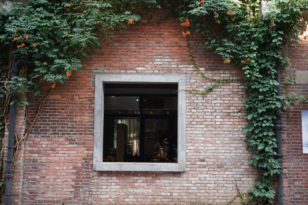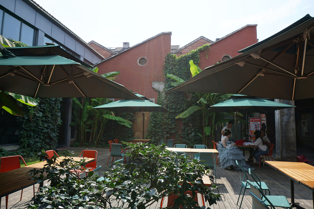 绿色的爬山虎如珠帘一般装扮着邑空间侧立面的整面红砖墙。这个用废旧的厂房,仓库改造而成的文创街区就是这样浪漫。这一方式最早源于北京的798艺术与商业群落。现在很多的城市都做起了这种遗迹保护。旧建筑凝固着岁月与历史,在注入现代时尚元素和文化后,新与旧的结合,即厚重古朴又另类而有新意,对于年轻人来说显得新奇而有个性,吸引着越来越多的年轻人来到这里。
