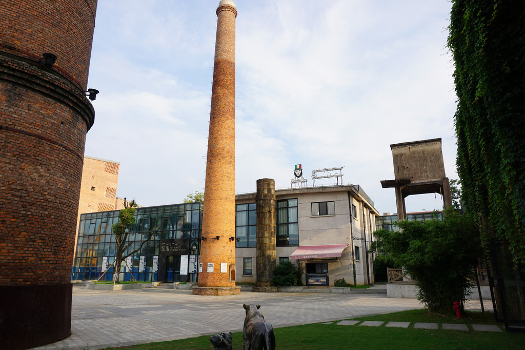 这个邑空间的东侧区域也是街区的东侧区域,满满的旧日工业化的元素。这一个区域叫法恩扎大广场。法恩扎是意大利北部城市,位于亚平宁山脉东北麓,是一个富有历史文化遗产的小城,以发展于十八世纪的古代陶瓷工业而享誉世界。这个广场见证了中国的景德镇与意大利法恩扎市成为友好城市。