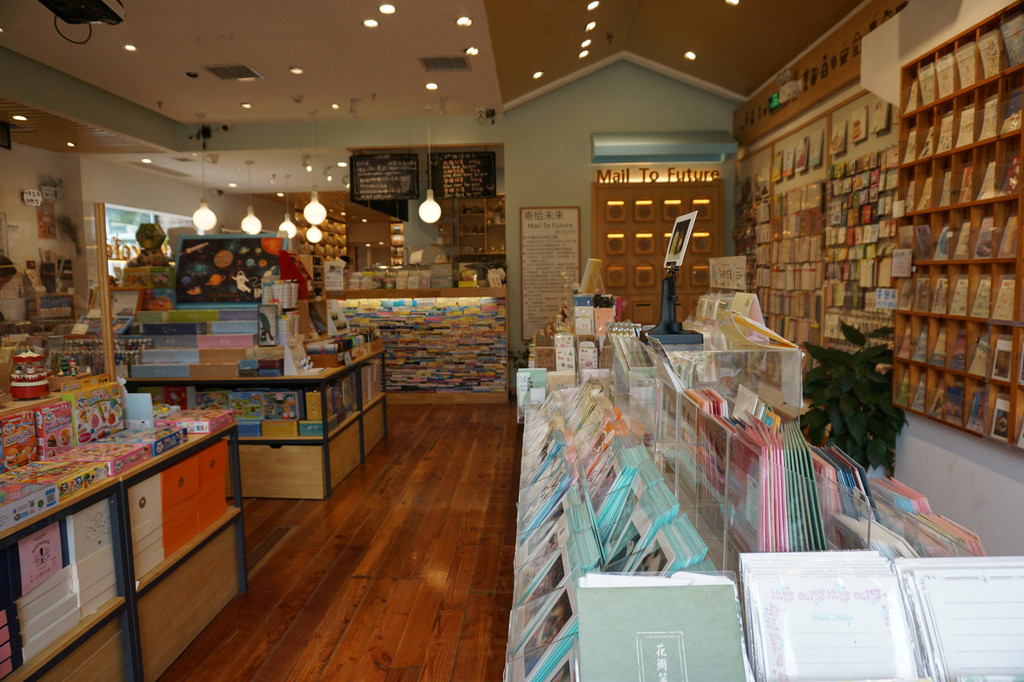 书籍,明信片,各色本子,文具,衣服,包包,还有咖啡,甜品,琳琅满目。