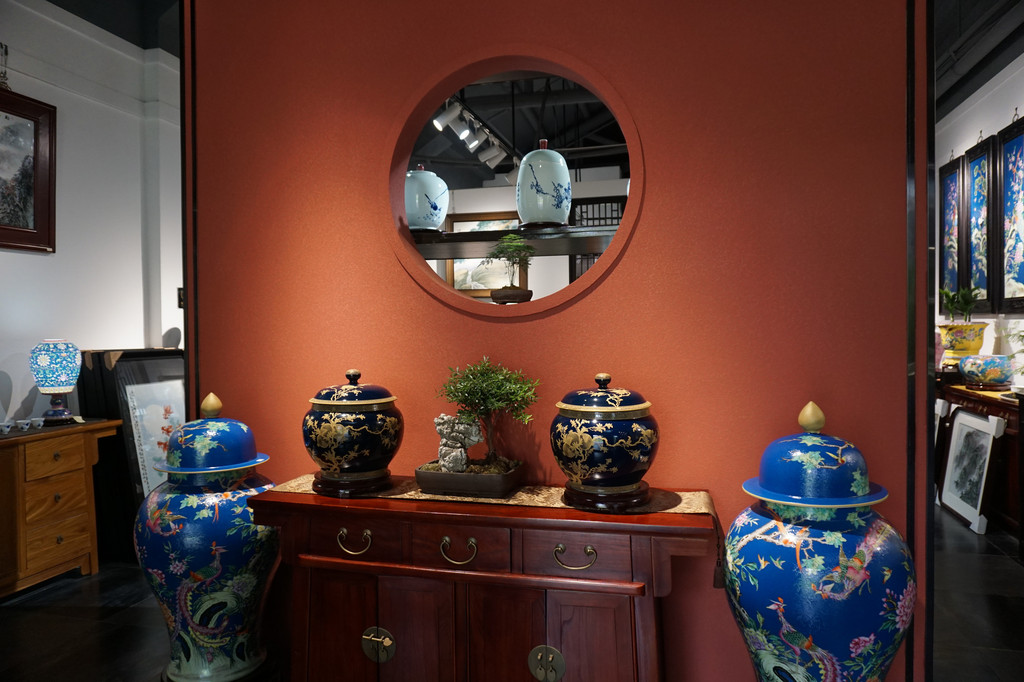 高大上的店铺占比更大。这家“成窑”是由政府授予的非物质文化遗产保护性生产基地。基地集数位非遗传承人、教授成立高端研发及生产平台。 近年来,由“成窑”基地生产的系列青白瓷得到业内及市场的高度认可,并多次获得大奖。