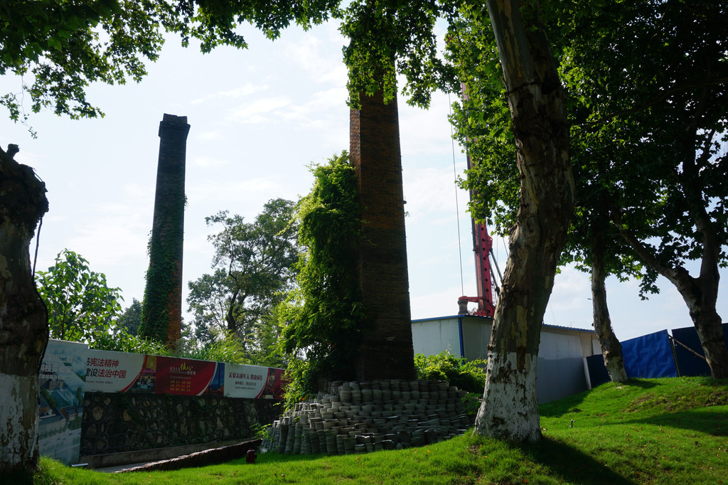 漫步在陶溪川,随处抬头,你就能看到高耸入云的大烟囱。“烟囱”对于景德镇几代人来说都是无比熟悉的物件。以前坐火车来景德镇,一个转弯看到林立的烟囱就知道即将到达景德镇这座城。随着窑炉设备的发展,这些曾经为陶瓷工业前进立下功劳的“站士”们如今面临着不断的拆除,消失在人们的视线当中。而在陶溪川,整个街区内几乎尽可能的保留了所有具备一定意义和价值的烟囱。它们全部源自曾经的旧窑厂。陶溪川的烟囱是有名字的,是有生命的。它们或站立在街区上成为园中视线的焦点;或隐藏在树丛中守护着整个街区;或在转角处默默伫立,引导着每一位过客。