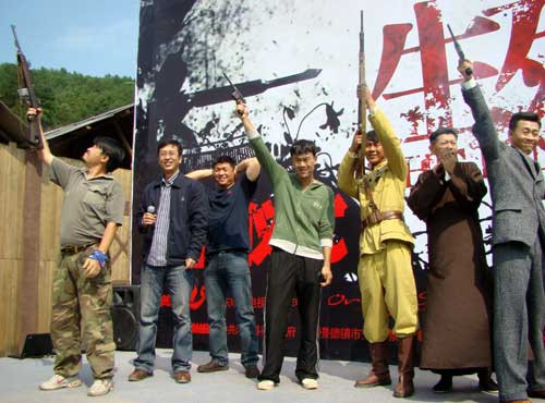 当时,在瑶里的深山里,为了拍摄的需要,摄制组斥巨资通过炸药开山后搭建出了一座二战时期抗日战争的飞机场,机场里设施一应俱全。而这个飞机场就是当时开机仪式举行的地点。