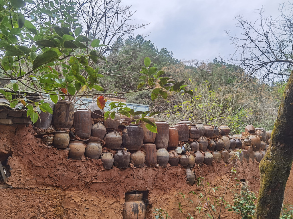 院子里有从外面引入的小溪,水清见底,虚虚实实的围墙上嵌了很多瓷片、陶艺,躺着的瓷碗、瓷片,有的掩埋了一半在泥里,一下子点出了主人的身份。