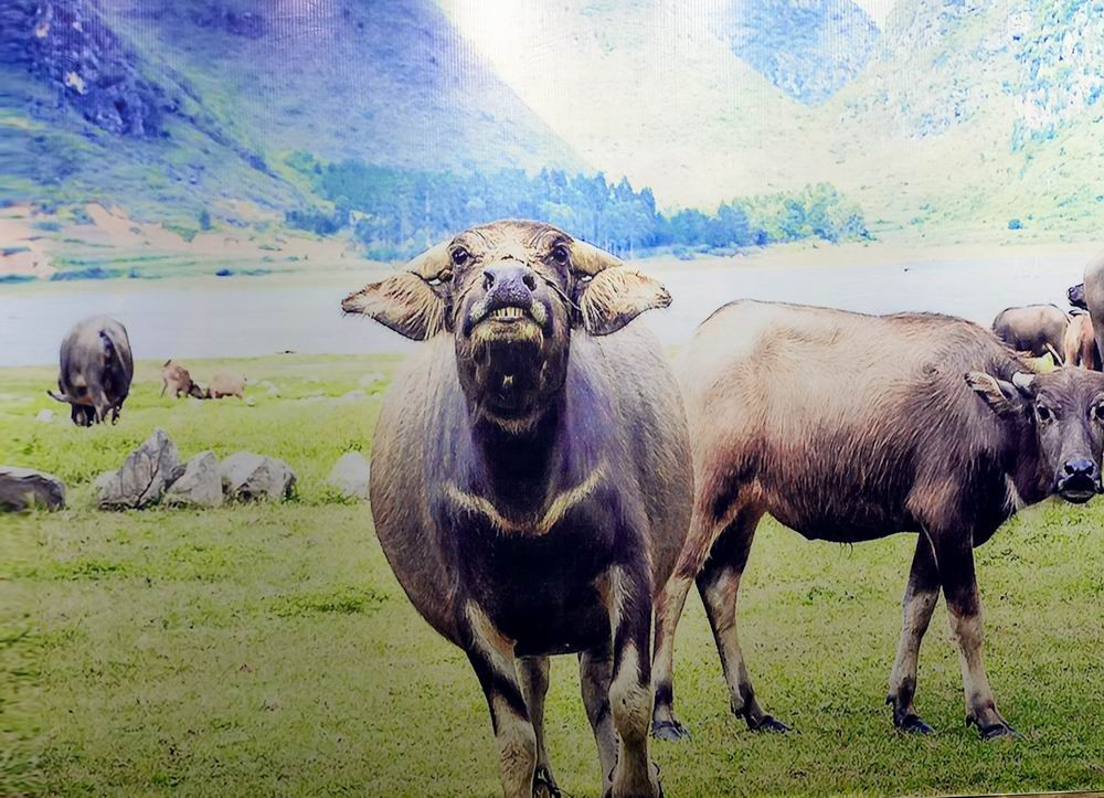生活体验馆是卖牛排凉席的,所以进门有一副大的水牛照片。