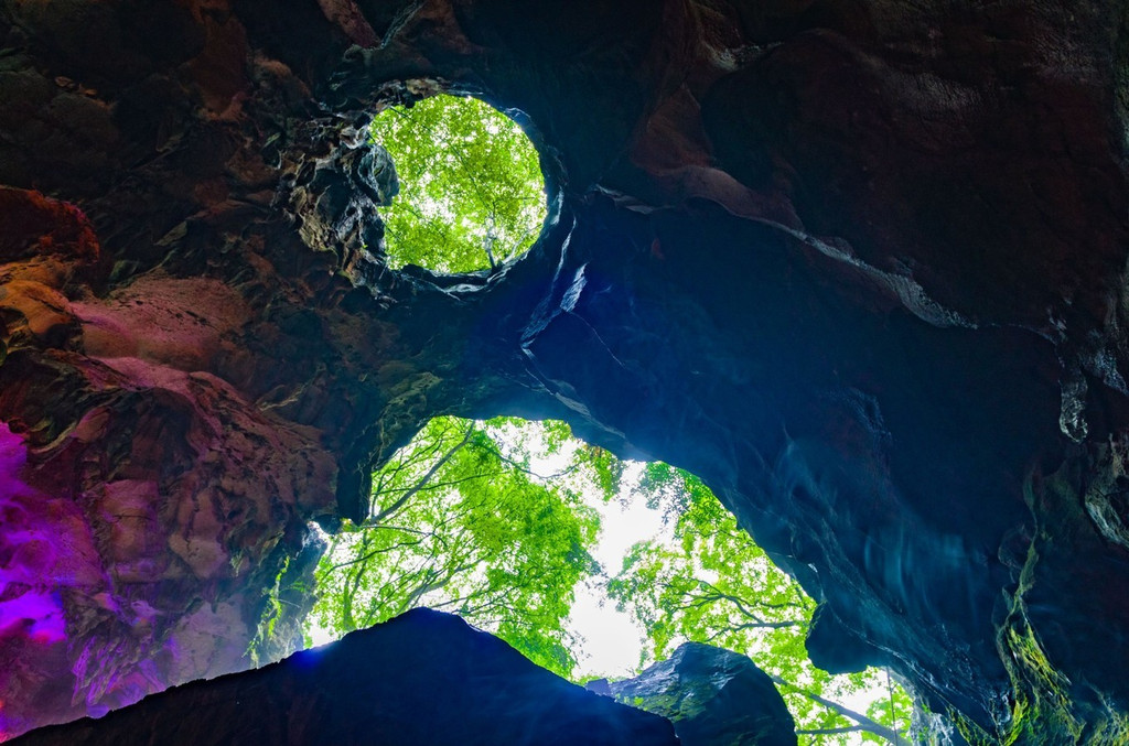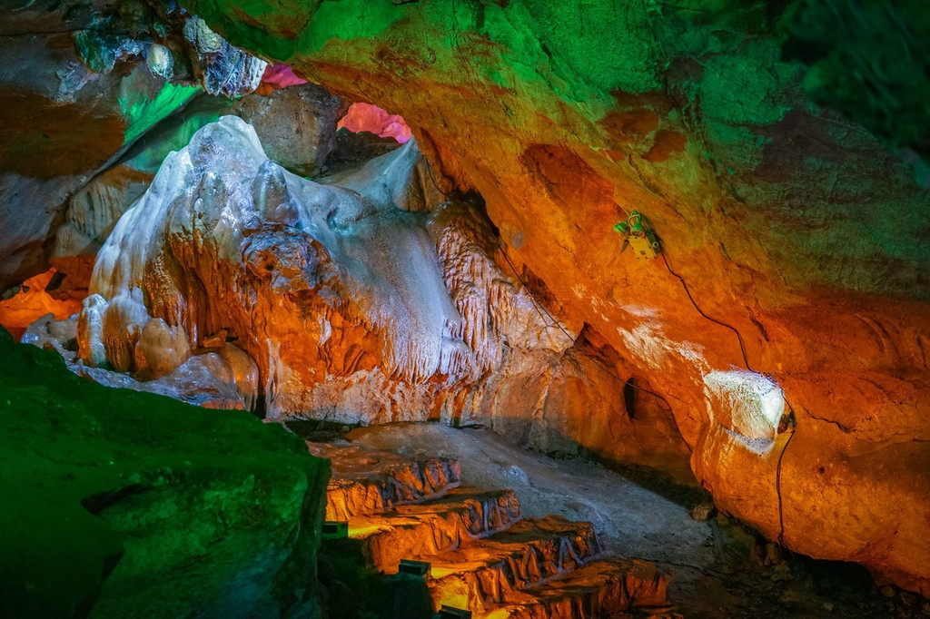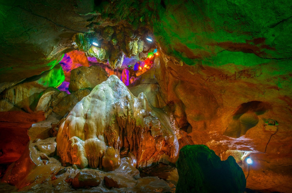 洞口高大宽敞,洞内钟乳,岩石奇特,千姿百态。“洞宾悬剑”,“铁拐醉酒”,“洞箫横吹”等几十处景观惟妙惟肖。