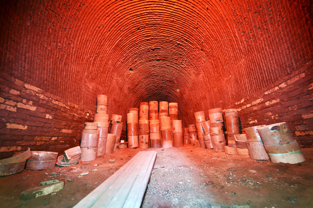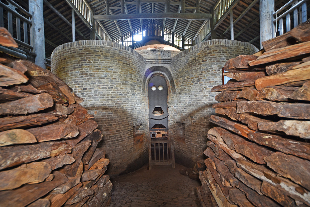加工好的成坯要经过最关键的一道工序,才能烧制成成品瓷器,烧窑在制瓷中起着举足轻重的作用。在古窑民俗博览区,可以看到历代不同形式的瓷窑,首先参观的镇窑成型于清代,是经过数百年探索完善,发展成熟的窑型,凝聚了景德镇窑工数百年的劳动经验和智慧总结,代表着世界传统制瓷窑炉营造技艺的最高科技水平。这座现存最古老、容量最大、烧造品种最多的柴烧瓷窑已成为全国重点保护文物。