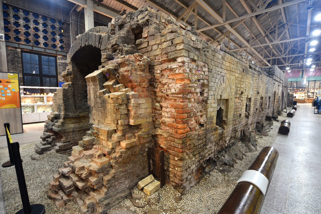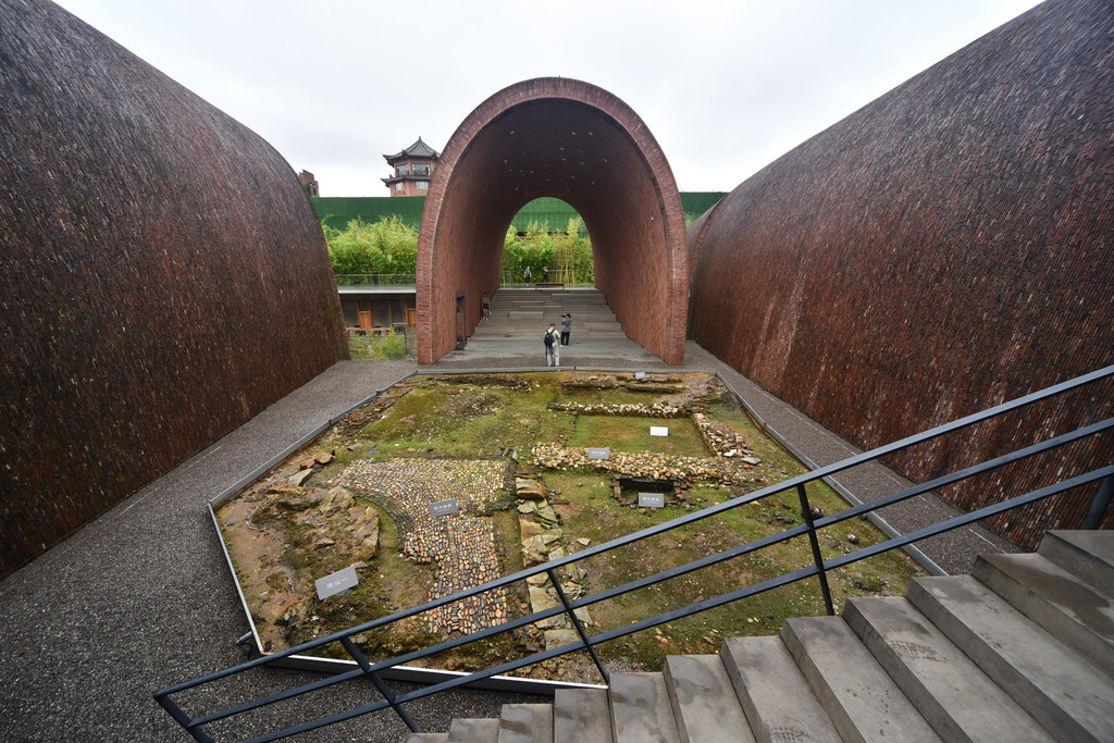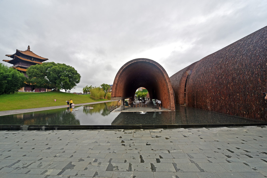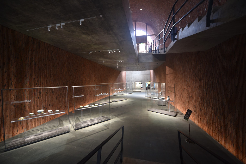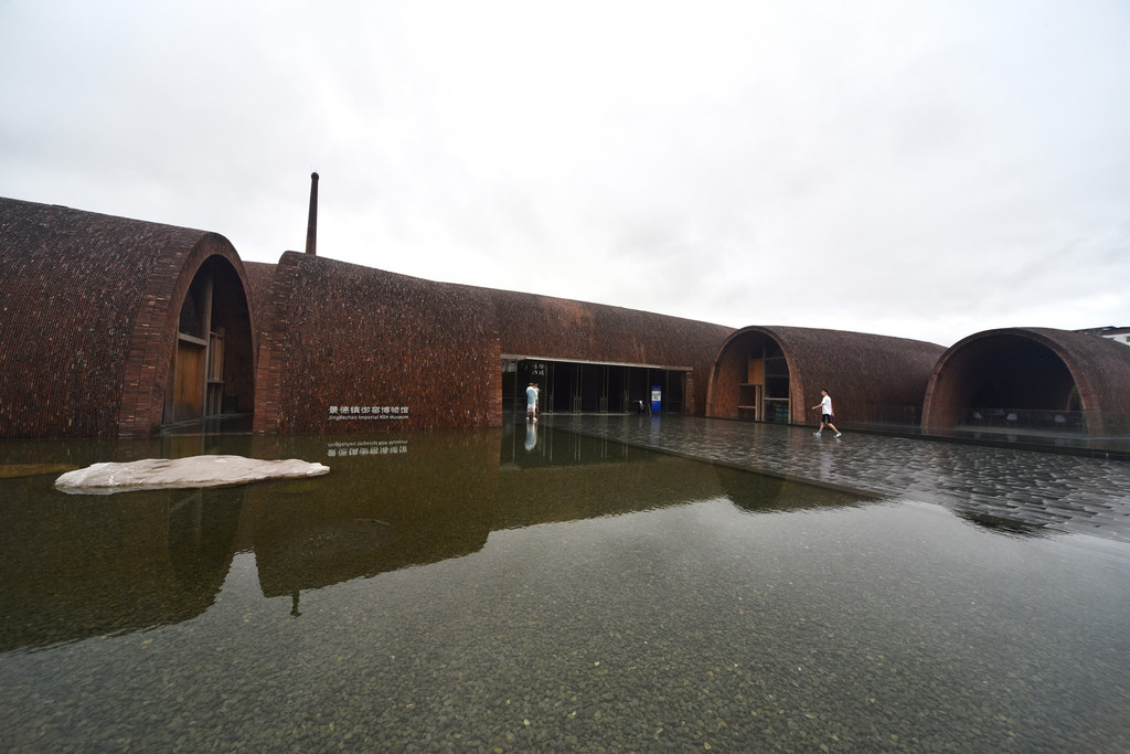 龙珠阁下的御窑博物馆是一定要看的地方,不仅有内容,建筑造型也极具特点,博物馆由8个大小不一、体量各异的线状砖拱体结构组成,下沉的庭院,开放的拱券,古朴的色彩,以其“高颜值”成为拍照超棒的背景。