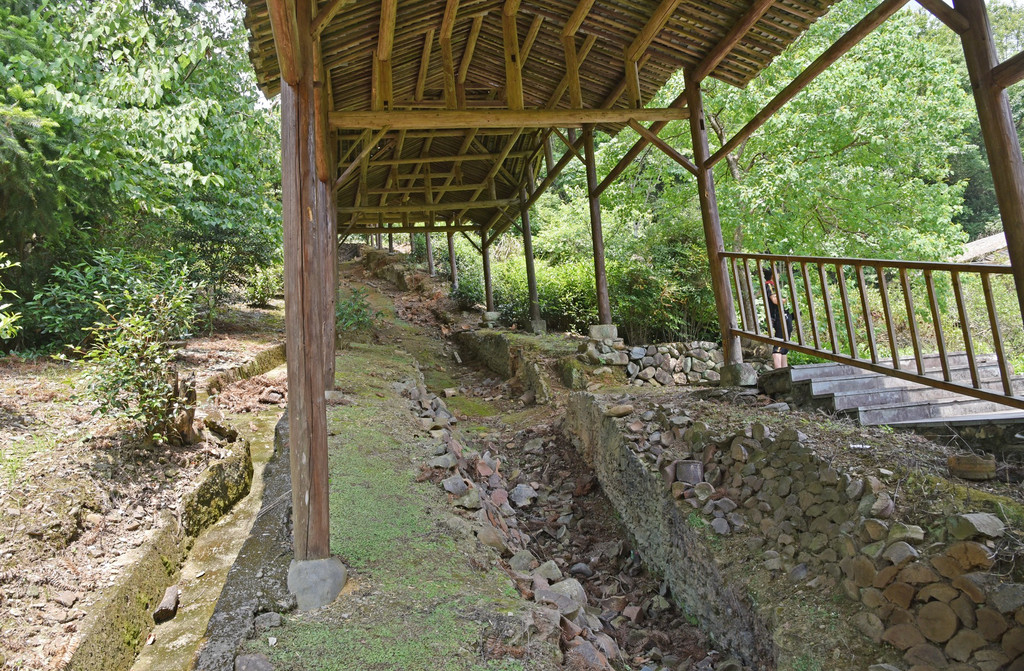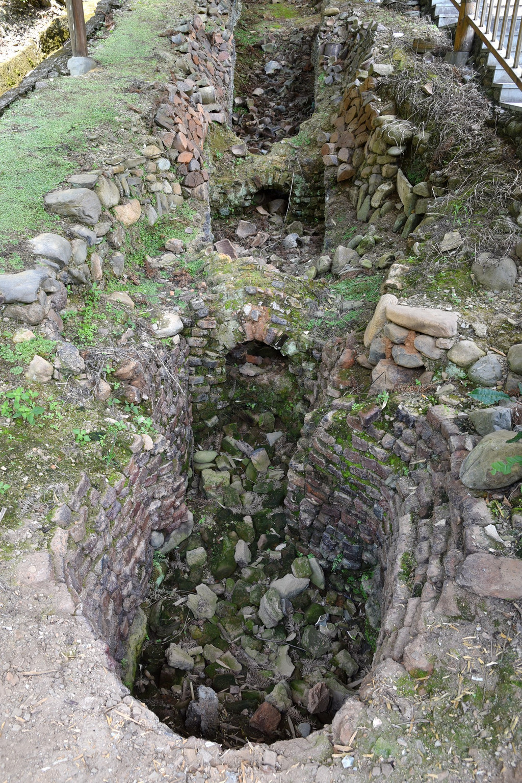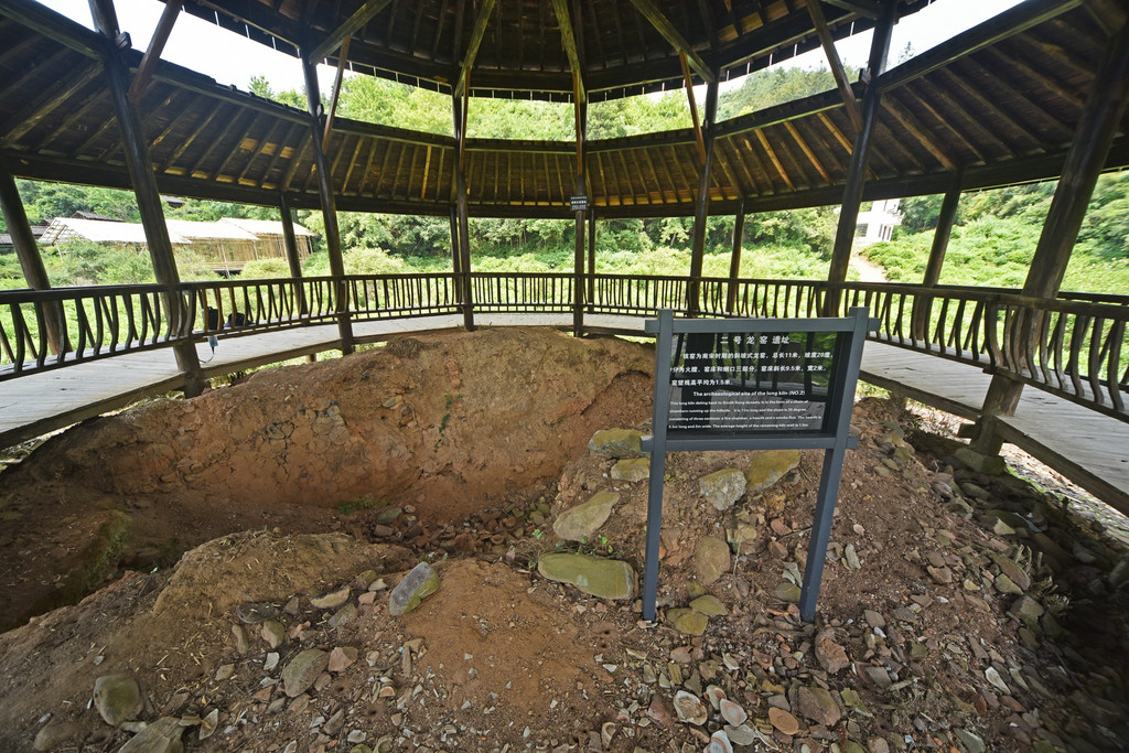 圆亭子下面是二号龙窑,规格较小,却是瑶里境内至今发现烧造年代最长的瓷窑之一。二号龙窑始烧于南宋,终止于明代中叶,为南宋时期的斜坡式龙窑。总长11米,坡度20度,是龙窑向马蹄窑转型阶段的一种小型龙窑。