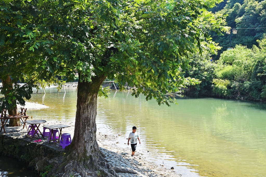 走在村里的街道上,废弃的陶瓷制品和残片堆砌而成的院墙极具特色,路过的小伙伴们纷纷在此拍照。村庄依山傍水,溪流瀑布间,一座座精致的房子错落分布,显得安逸、闲适,住在这里,会有一种世外桃源般的超脱。