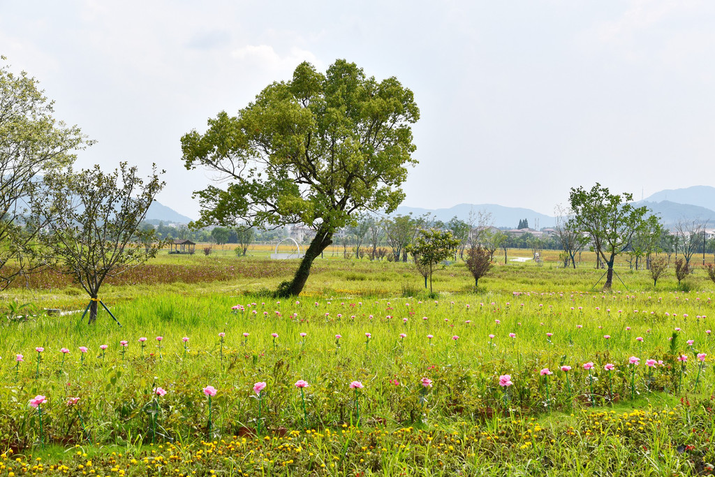 花海总占地面积两千多亩,集“研学教育、趣味游乐、浪漫休闲、银发养生”等体验于一体,打造了一片“春有草、夏有花、秋有果、冬有绿”的花园式休闲观光区。