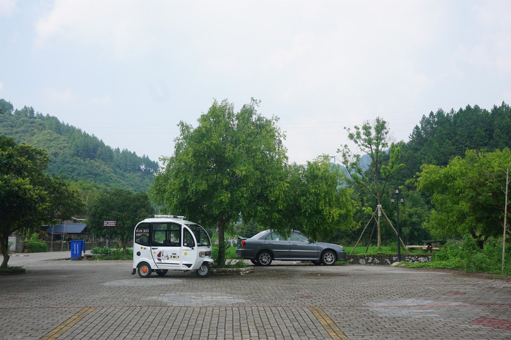 我们沿着村道一路往村子深处行驶。一直行驶到村子的最东头,停车见山,山边一栋栋村舍。