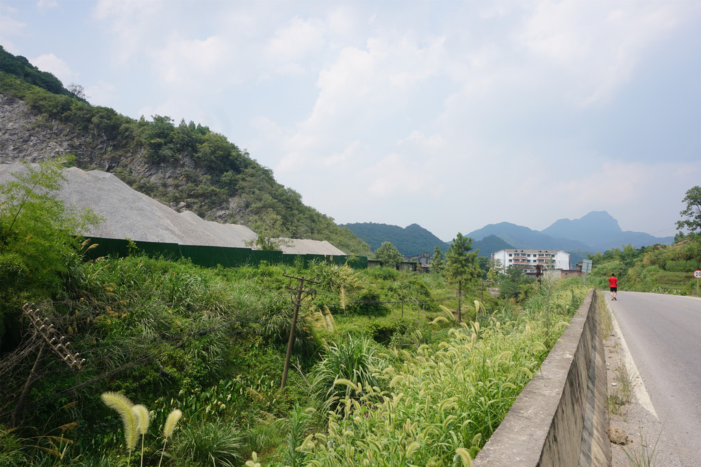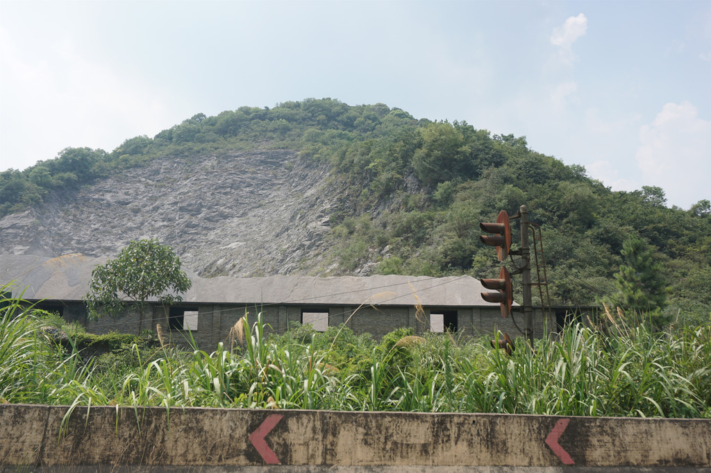 原来的矿山,还可以看到痕迹。这里有一个信号灯,铁轨就在山边穿行。