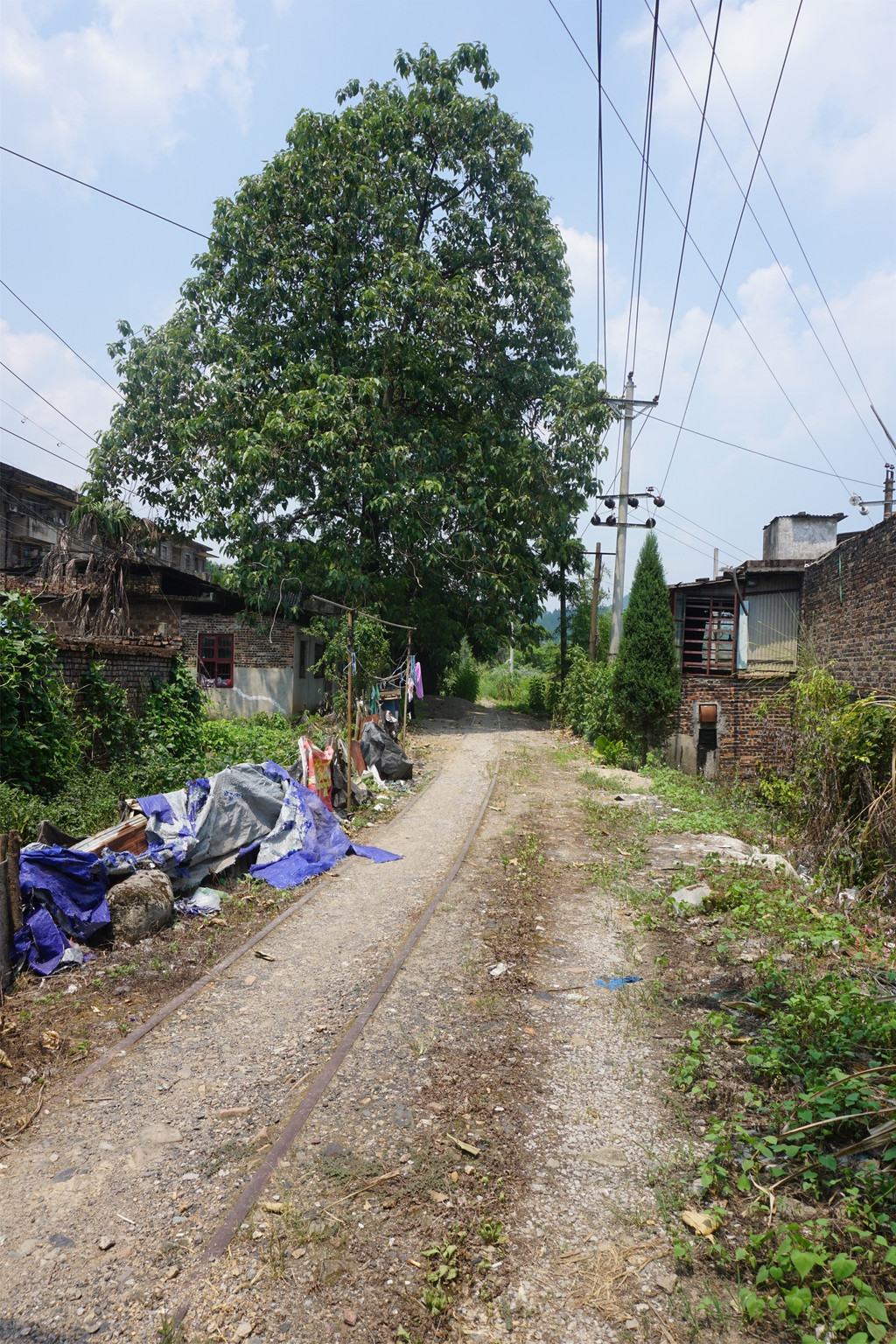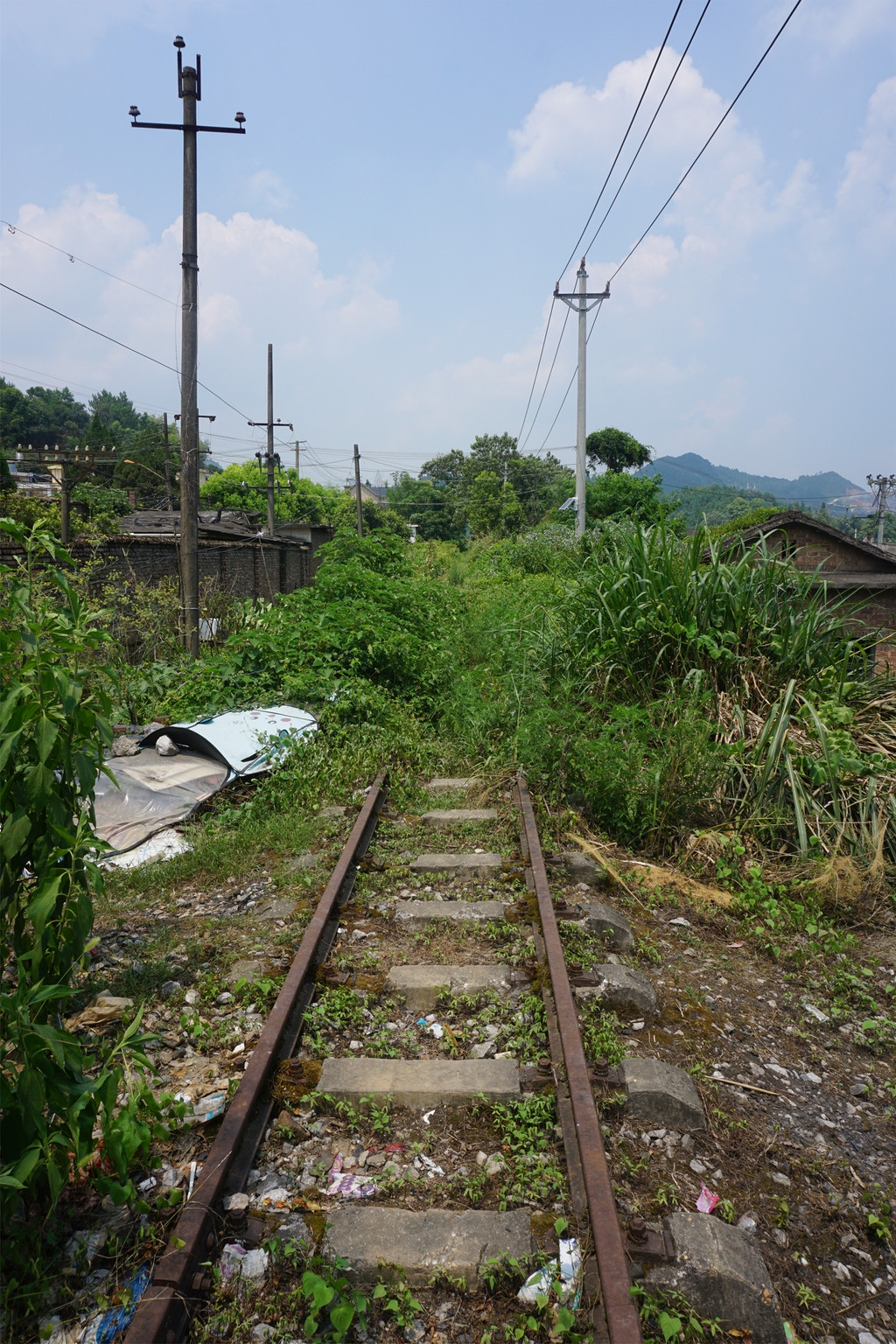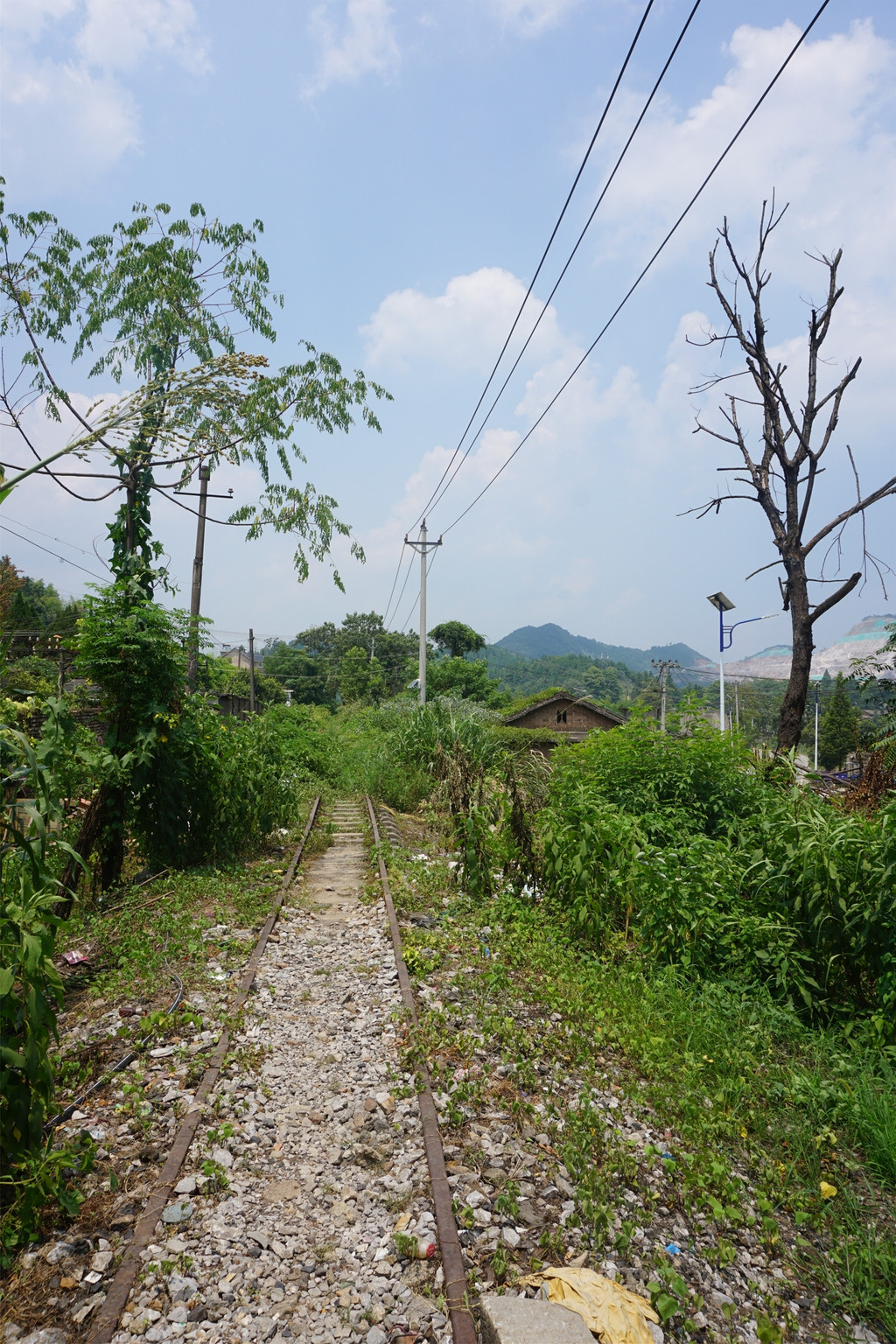 反方向的这段铁轨,因为附近有住宅,可能偶有行人,所以没有被杂草,砂砾完全掩盖。其实一路上这条铁轨穿行在青山绿水间,风景秀丽,废弃了挺可惜的。就如南京的江苏园博园就是利用了原有矿石厂的自备铁轨在园区开启了观光小火车的项目。闺蜜也提到了乐平矿务局也是有此规划的,希望若干年后这个规划能实现,这样工业遗迹即得到保留又能带着我们与这里的山山水水更亲密的接触。