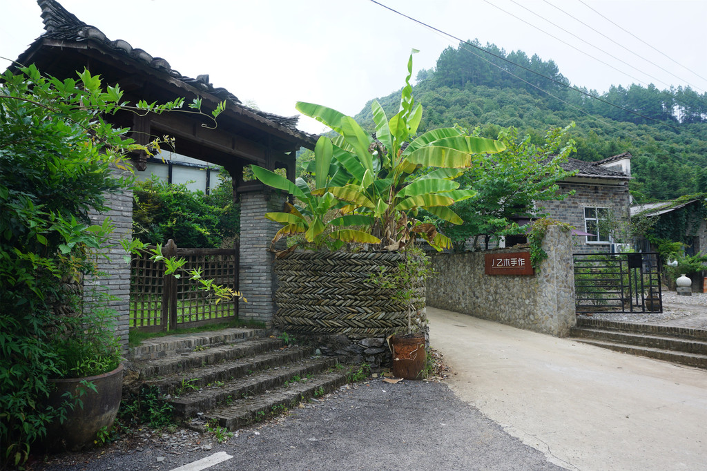 院中一栋朴素的青石砖的房屋。这里是村舍,但被艺人租下来,成为了那种前店后场的工作坊。