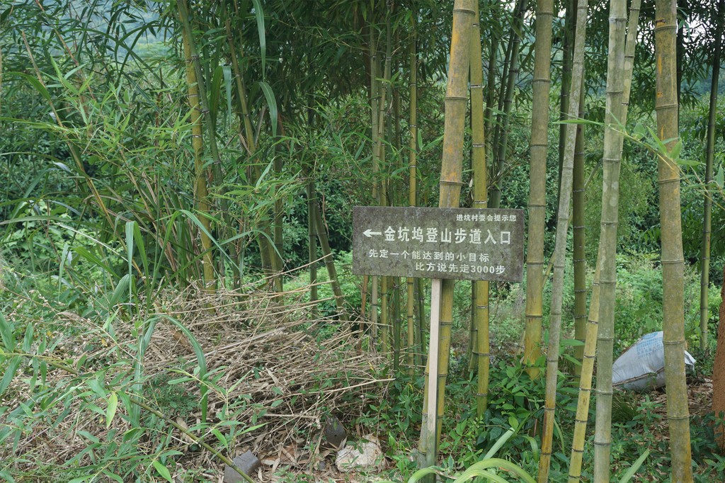 这里是金坑坞登山步道口,一条小道可以继续向山中步行。