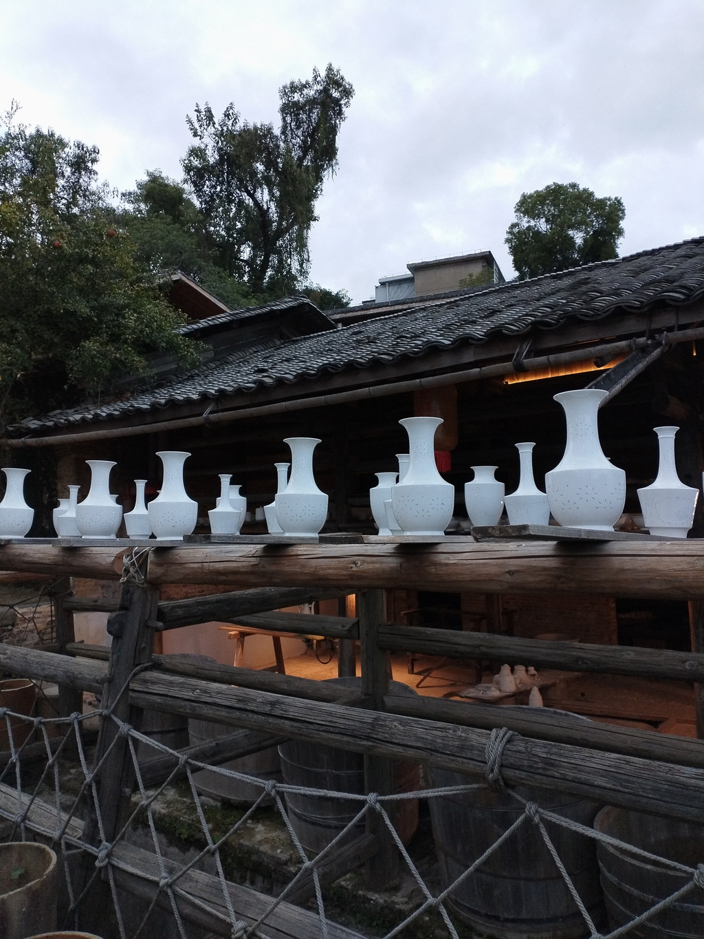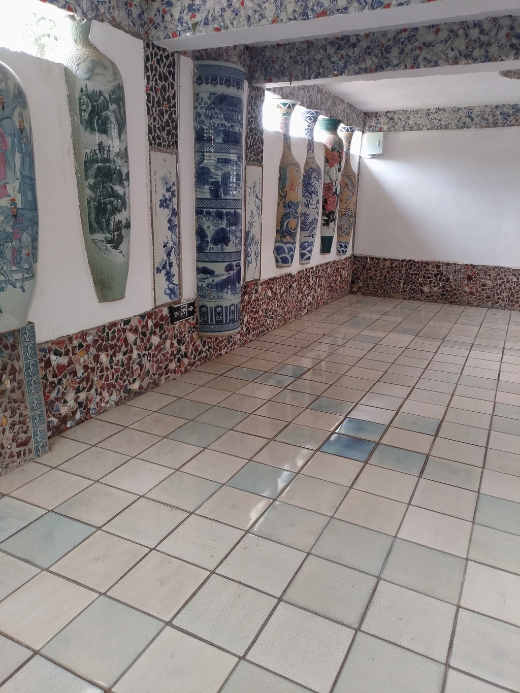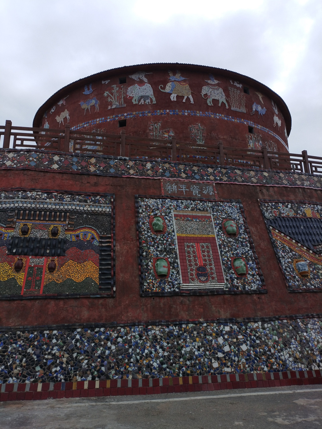 第二站瓷宫,在瑶里返回市区的半途中间,有四座方、圆外形的建筑组成,每幢建筑物的墙体都由各种瓷片、瓷瓶、瓷砖、瓷罐、瓷画等瓷体物件砌成,估计全国仅此独有,十分震憾。