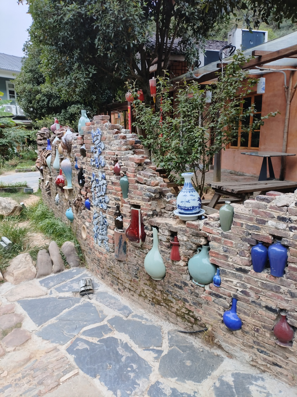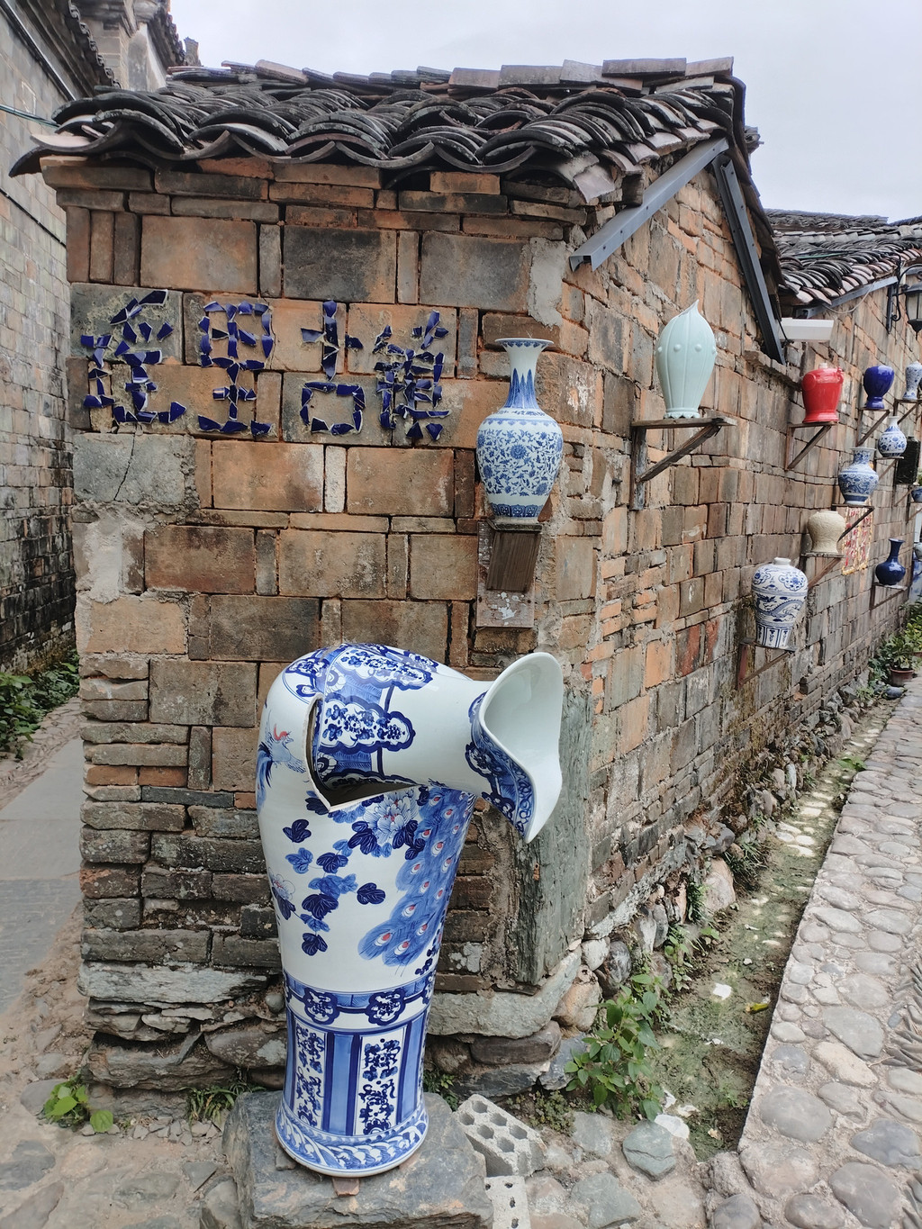 第二天上午直接前往三宝村,在村口租个电瓶车(其实,上午可以开车进去,但过了中午去的话,容易堵车,建议租个电瓶车,可以省去堵车的时间),一路边开边看,甚是有趣。三宝村里有不少的打卡点,包括受气瓶、躺赢瓶等,不少商家门口也都设置有极具特点的瓷器作品墙,每家各有特点,互不相同,很有看头,可能更适合年轻人。