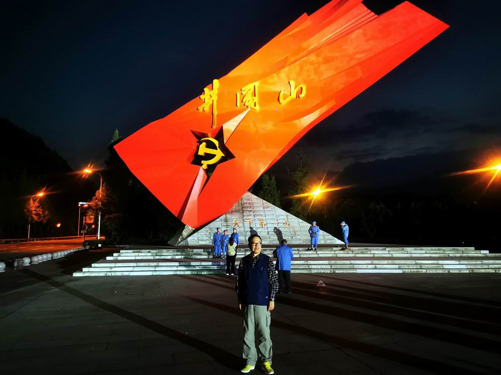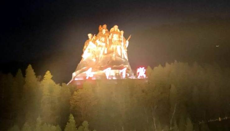 合肥新桥国际机场至井冈山市近700公里,虽然全程高速,但因为出发的晚,到达井冈山的高速公路出口时,天已经黑了。照片摄于井冈山高速公路出口的雕塑。