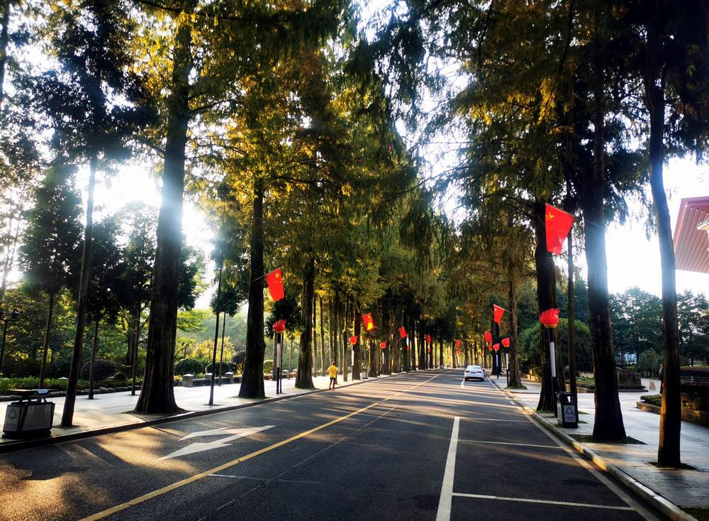 第二天清早起床,我陪同来的老王大哥游井冈山市的茨坪镇。茨坪是井冈山市政府所在地,海拔826米,是一座美丽的山城。图为茨坪镇的林荫路。