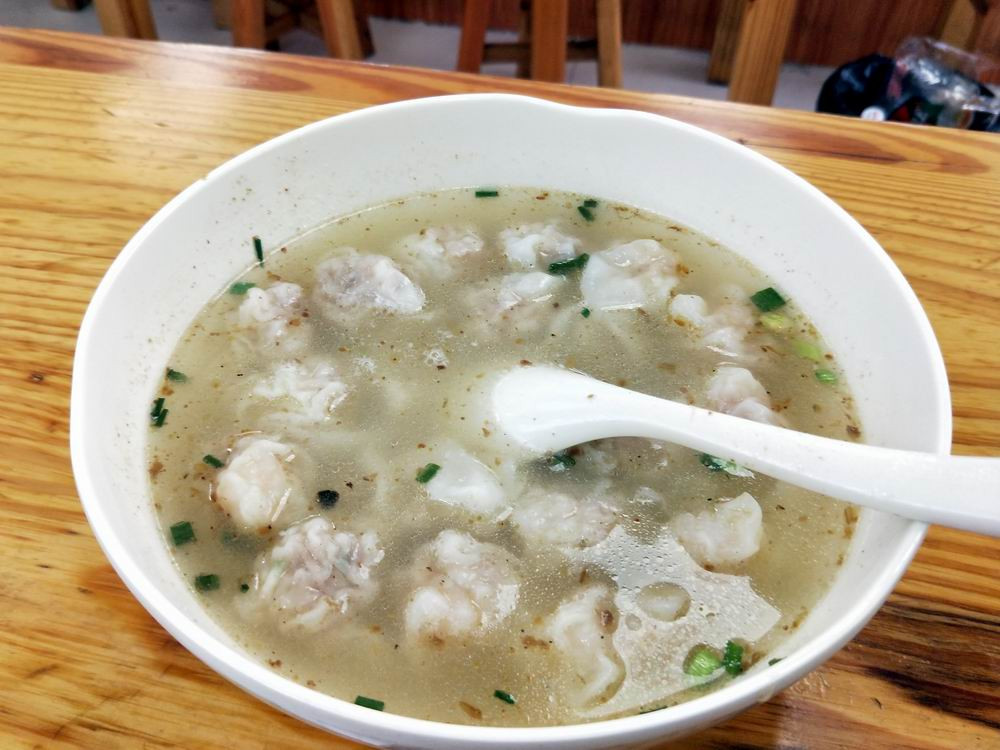 天街上的饭店大多没有人光顾,我们选了一家有人的粥面铺。一路上比较辛苦,吃了一碗馄饨,就回宾馆休息了。