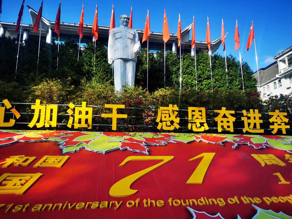 我们下榻江轩宾馆前的汉白玉毛主席塑像,说井冈山市的地标之一。