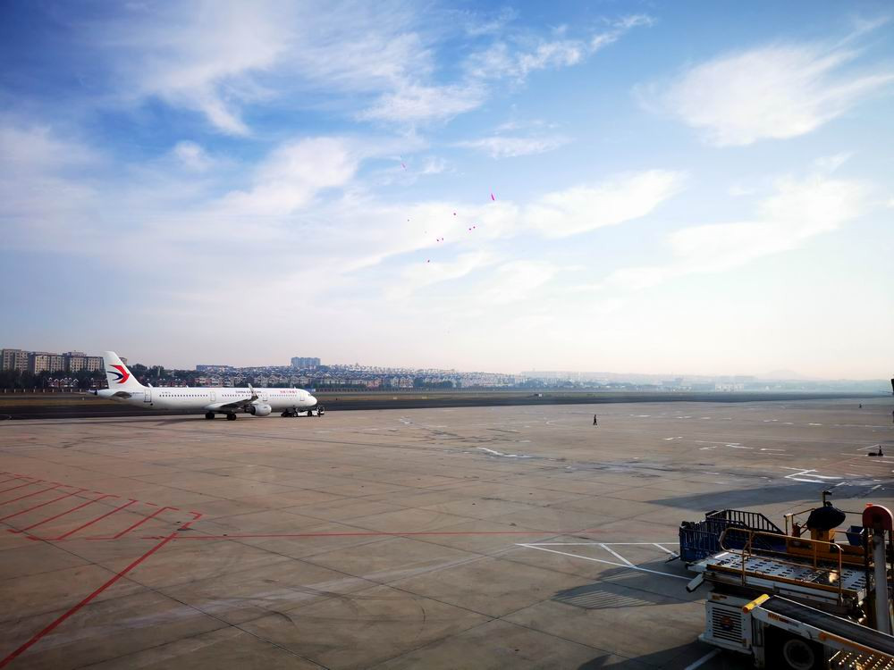 当天上午10时许,我们的航班到达安徽合肥的新桥国际机场。照片摄于合肥新桥国际机场。