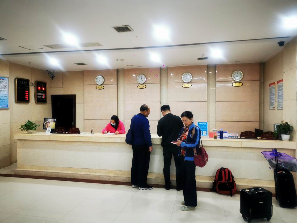 井冈山市的江轩宾馆说一家四星级酒店。图为司机在帮我们办理入住手续。