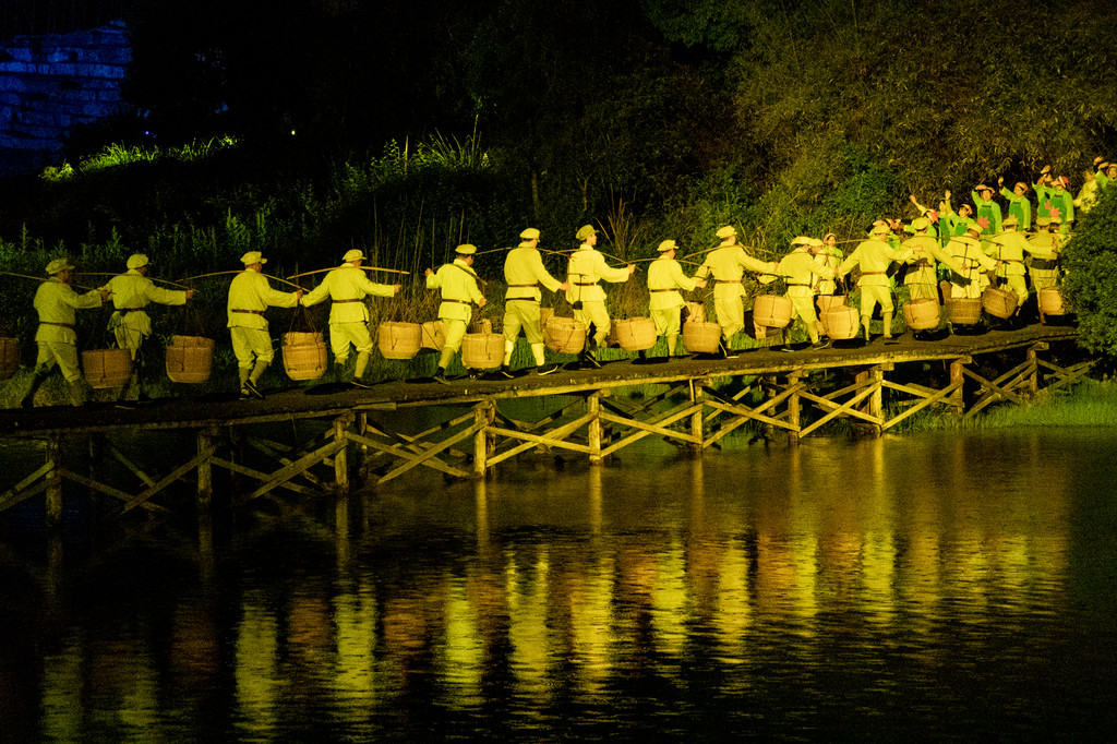 观看实景演出《井冈山》,你会看到许多身穿红军服装的演员,其实这些都是当地的农民,而他们的长辈们可能就是当年的红军,现在他们又穿上了老一辈的服装,继续传承红色文化。