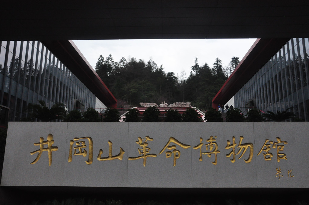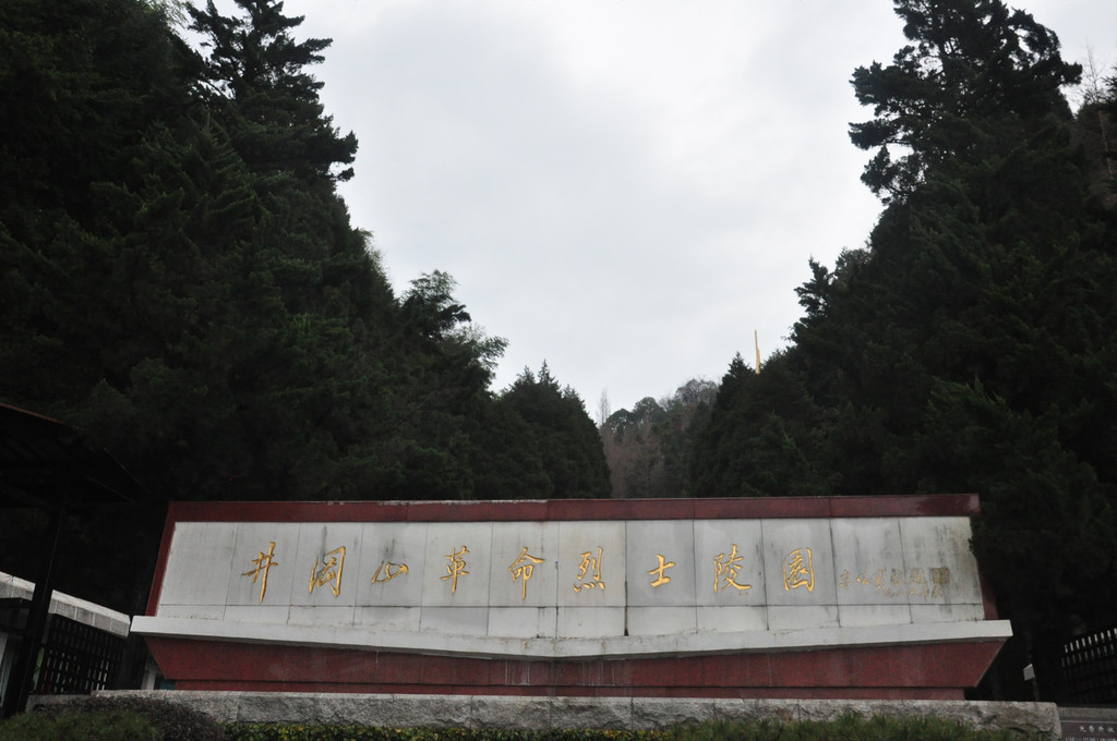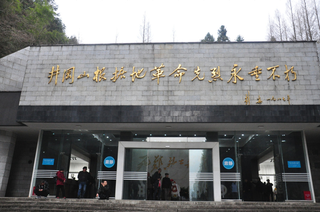 毛主席旧居景点小,不大会就看完,3点半出来,打算乘公交车前去井冈山烈士陵园,井冈山只有一条公交线路,是环线,免费乘坐,但是车少,我们等不及,就步行而去,其实茨坪镇不大,走着也不算远。下午4点50到烈士陵园,天开始下小雨,难道天公在落井冈山博物馆,位于井冈山市茨坪红军南路,筹建于1958年11月,于1959年10月在中华人民共和国建国十周革命年之际竣工开放,属于中国遗址性革命史类博物馆。