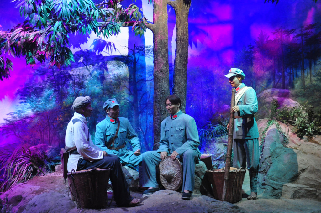 安顿好住宿,出门吃饭,附近有小餐馆,我们想着去步行街看看,结果通往步行街的道路正在维修,转了一大圈,还是回到原点吃了兰州拉面。饭后,步行前往井冈山革命博物馆参观,博物馆需要预约,当天旅行团特别多,下午1点半我们进入博物馆。
