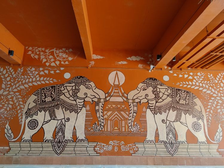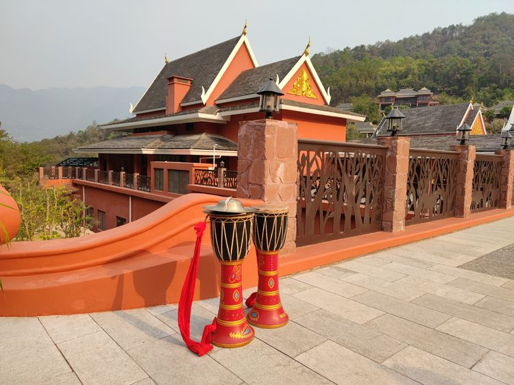 建筑都是傣族建筑风格造型,用得最多的是红色、金色这样的鲜艳色彩,吉祥的孔雀、美好的祝福,感觉很不错。