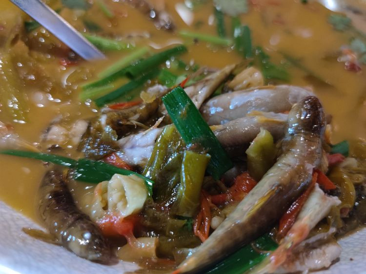 臭菜煎蛋、凉拌鬼鸡、香茅草排骨、凉拌树花、野番茄煮红尾巴鱼、菠萝咕咾肉、大白花洋芋泥、苦菜汤、凉拌萝卜皮,这些地道的景谷家乡菜,你还记得吗?普通的食材、正宗的味道,在漂亮的餐厅里享用,甚美。