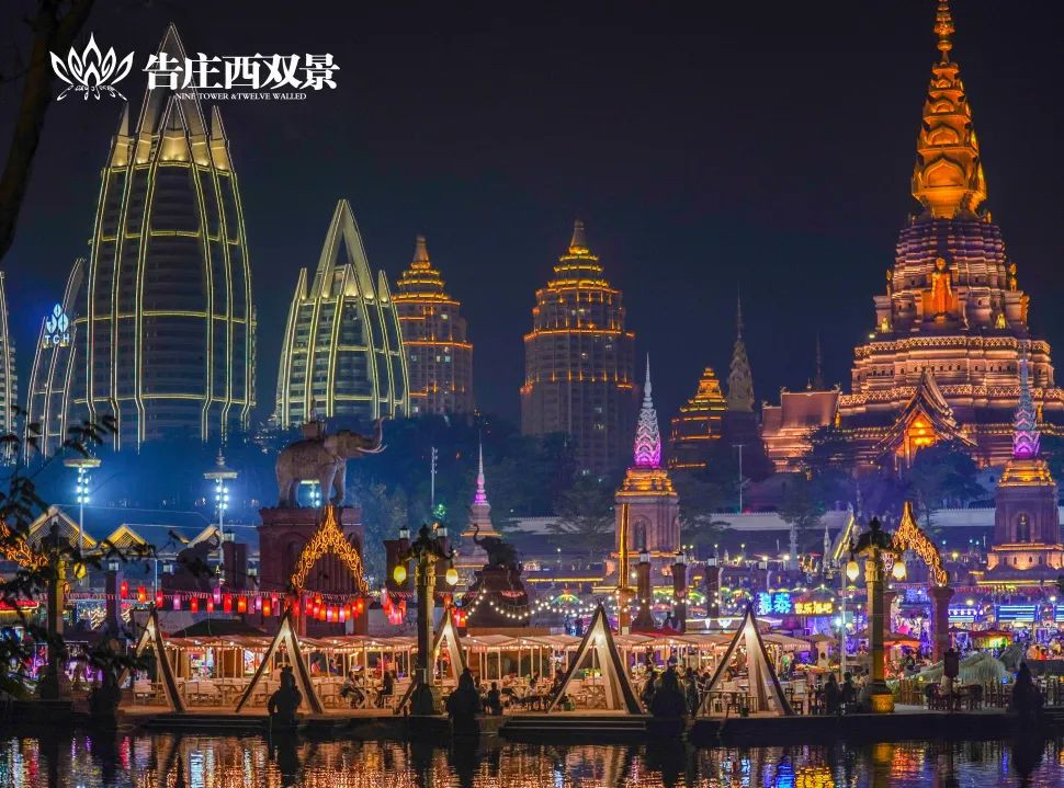 夜幕降临时,灯光璀璨,点缀了西双版纳的夜晚!