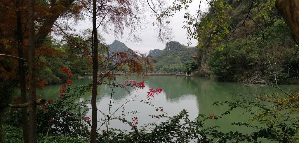 龙潭公园是典型的喀斯特地貌,除了奇特耸立的山峰外,有几个碧水深潭,尤其是雷潭,那水温润如玉,假如阳光好的话,一定能变幻出更多的色彩层次,鱼在潭中的游动也清晰可辨;任何风景,有了水的灵动,一定是漂亮的,完全是天然的山水盆景,加上唐代柳宗元曾经在此为柳州城求雨祈福,更添了人文与历史的元素。