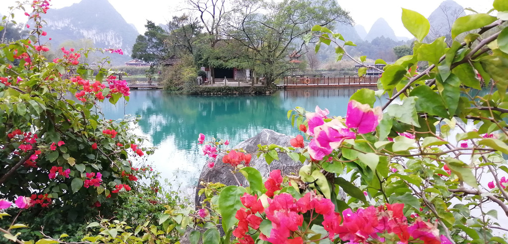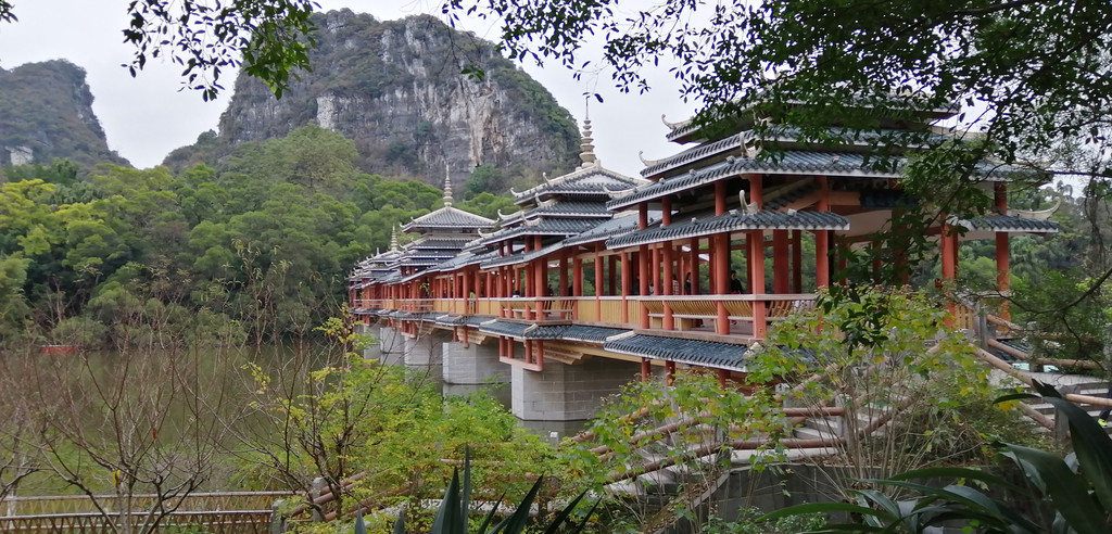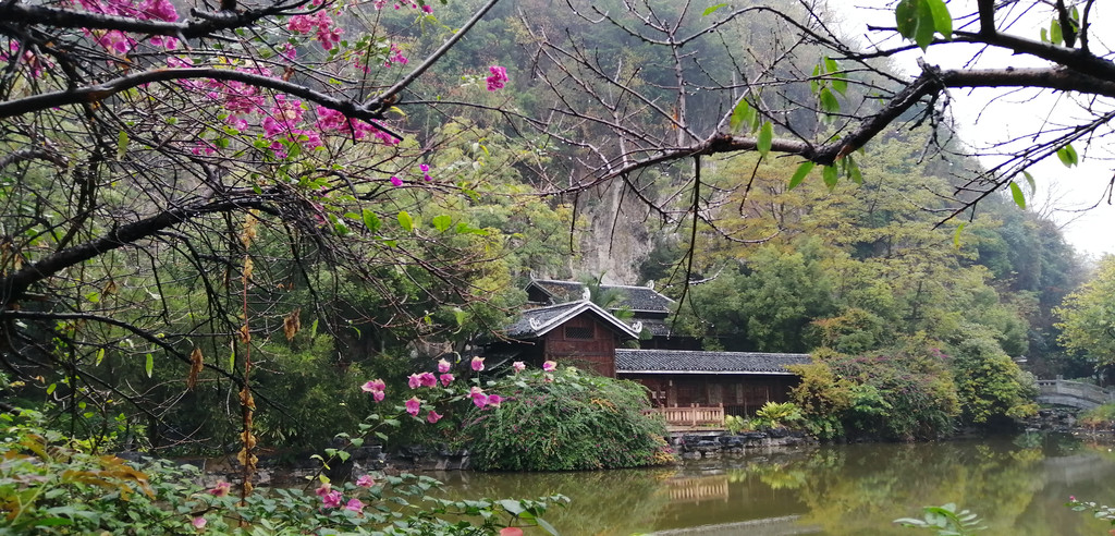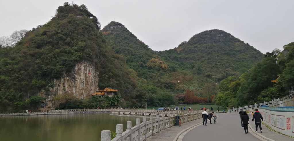 龙潭公园挺大,而且还免费,风景真的一点也不输给桂林山水,至少不输给桂林市区的山水,而名气是很小的,星期天的下午,只少数的本地人在悠闲地散步或者锻炼身体,里面也配有些人造的景观,多是颇具民族风情的建筑,像风雨桥,苗寨、瑶寨和侗寨等,对于日常生活在水泥森林的都市人群来说,到此看看一定会觉得新奇好玩的。我喜欢这里的幽静和清闲,又不缺少风情与灵动,要是时间宽裕,愿意在此呆上一整天,不骗你的!