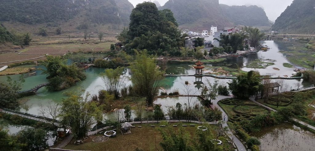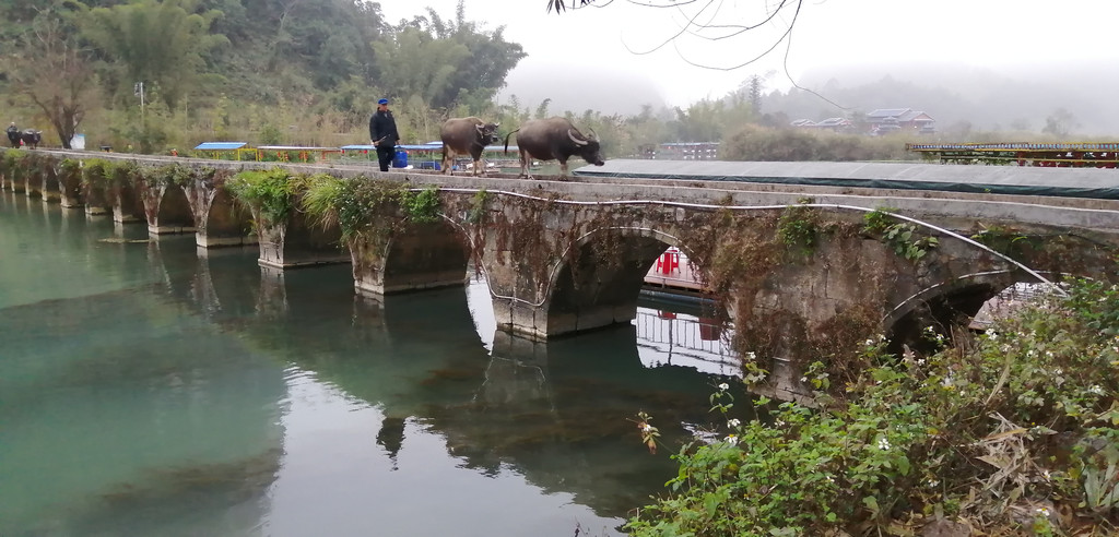 背上背包,离开的鹅泉村,回望一下村口那座十五孔桥,我把一切的美都定格在照片中。然后走到新的公路大桥边,等车。公交似乎是等不来的,最后拦了辆当地带篷的三轮摩托,到达靖西市区,吃完中饭,再找了同样的三轮摩托去火车站,回到南宁去转车。