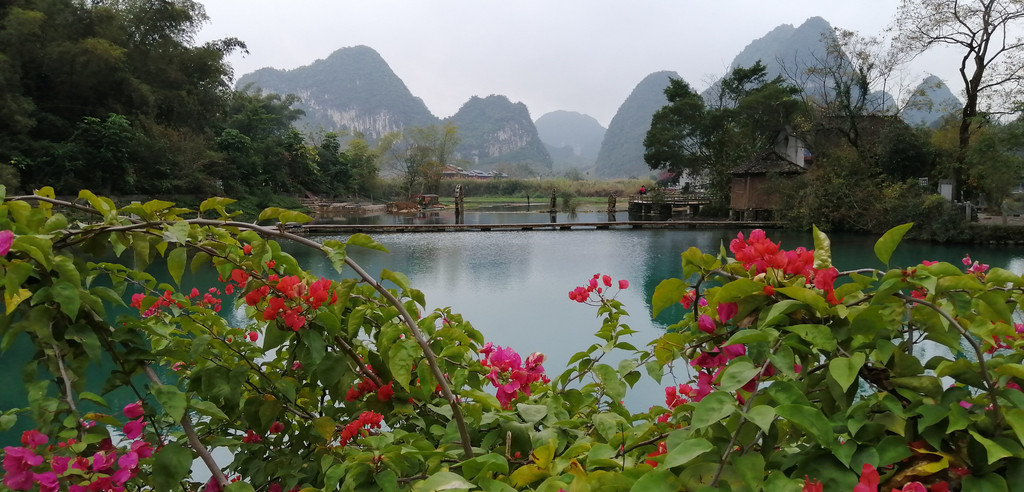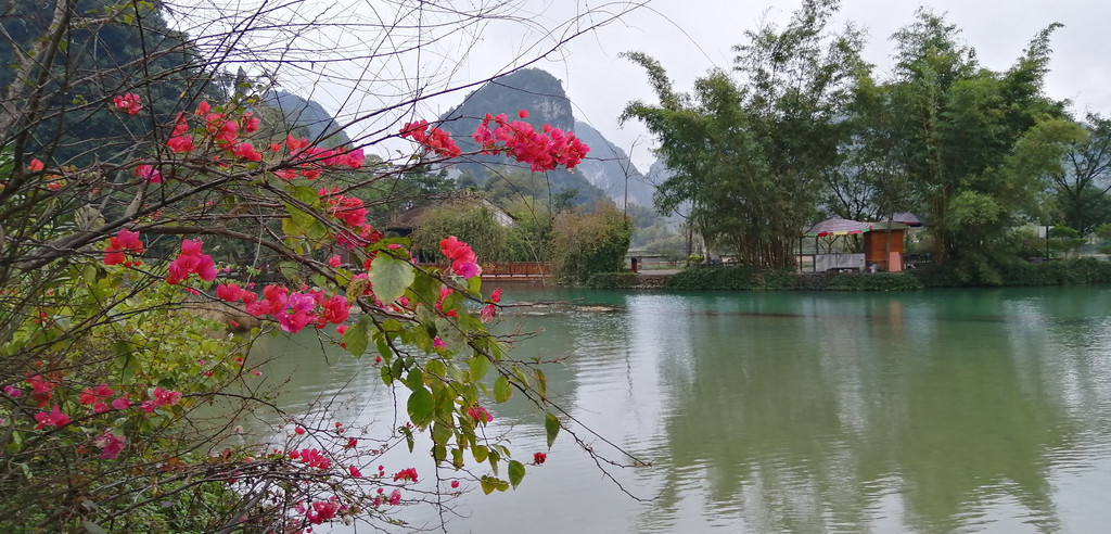 第二天早晨起床,天还没有亮,就吃完早饭走出农家大门,外面一片漆黑,不见一盏路灯,不见一丝光亮,只凭着外面水流的声响和微微的天光,辨认着周边的方位与脚下的小路,摸着黑,小心翼翼地走到了景区的后门,再次缓缓走进景区,似乎除了我以外,没有一个游人,静谧极了;凭着黑黢黢的山水轮廓,慢慢挪到了中央的小岛,静静地坐在水边,伴随着天色渐渐变亮,要是没有厚厚的云层,一定可以见到满天的心斗,也可是欣赏日出的美景,那该是一件多么美妙的事情啊!即便没有这些景色,我也能在纯净的黑色里感受到这个奇妙的天地在演变,直到天色完全放亮。