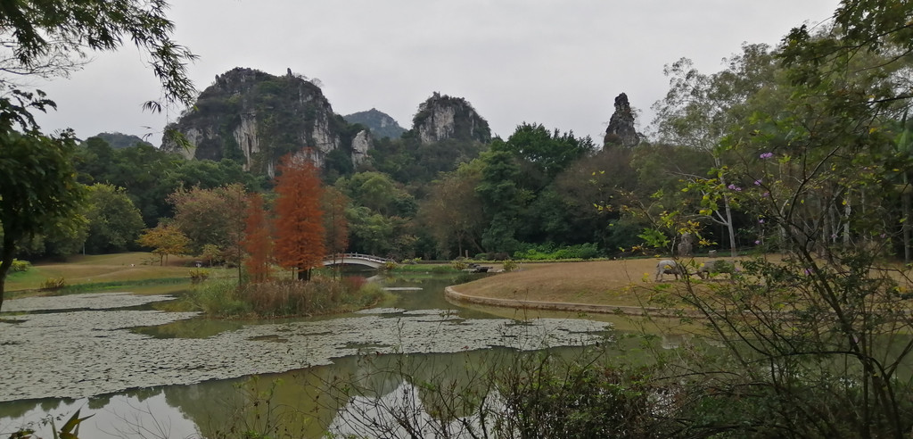 喀斯特地形最显著的是峰林与溶洞,洞中套洞,洞里连洞,洞中藏河,不过我对这种溶洞的喜好很一般,感觉大同小异,见过一两个以后,就没有兴趣了,故此,即便明明知道公园中有溶洞,也懒得进入探索了。宁可在光天化日之下,欣赏清清楚楚明明白白的景致;喀斯特山的形状是要靠想象力的,有的形状清晰,不言而喻,有的因为角度的不同,或者眼力与想象的差异,得到的结果是截然不同的,而我呢,只喜欢看看这种奇异的造型,并不一定要觉得这像什么,那又像什么的。园内有一处叫美女照镜的静观,我当时愣是没有看出,回家以后看自己拍的照片,才发现的,可见这个现状的辨认并不容易,也因人而异。