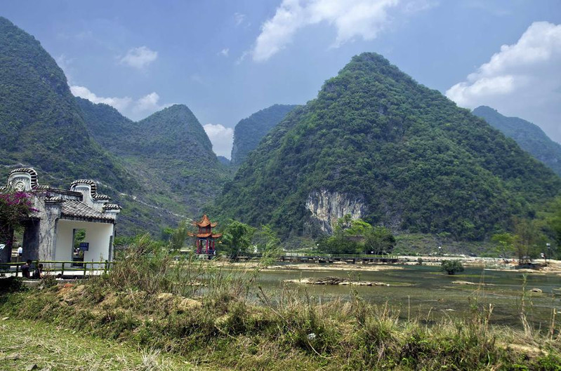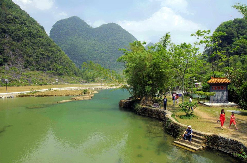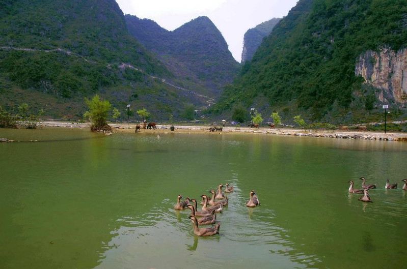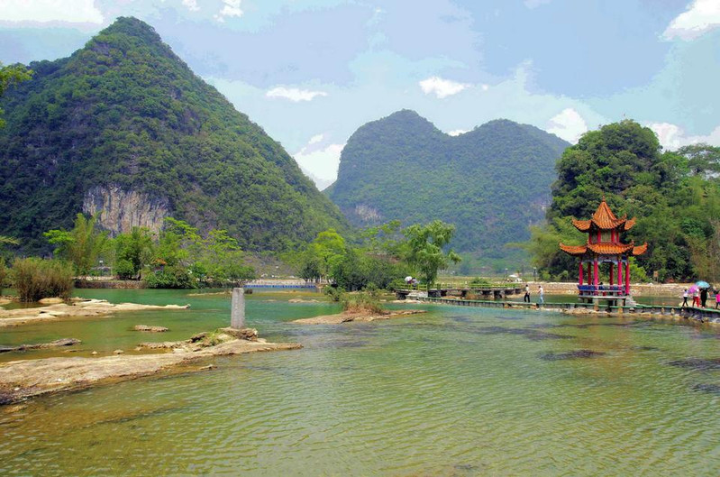 鹅泉位于县城西南海公里处,是靖西著名的八景之一,已有七百多年的历史。鹅泉为中国西南部的三大名泉之一(大理的蝴蝶泉、桂平西山的乳泉)。鹅泉又是亚洲第一大跨国瀑布---德天瀑布的源头,是中南地区母亲河-珠江的源头之一。 明代皇帝赐封的“灵泉晚照”古石刻使鹅泉披上了神秘的色彩。第1天2015-04-14田园风光靖西县属百色,夏天无暑,冬无严寒,境内山明水秀,以奇峰异洞、四季如春的自然风光闻名遐迩,还没进景区,就已经是风光无限了。田园风光