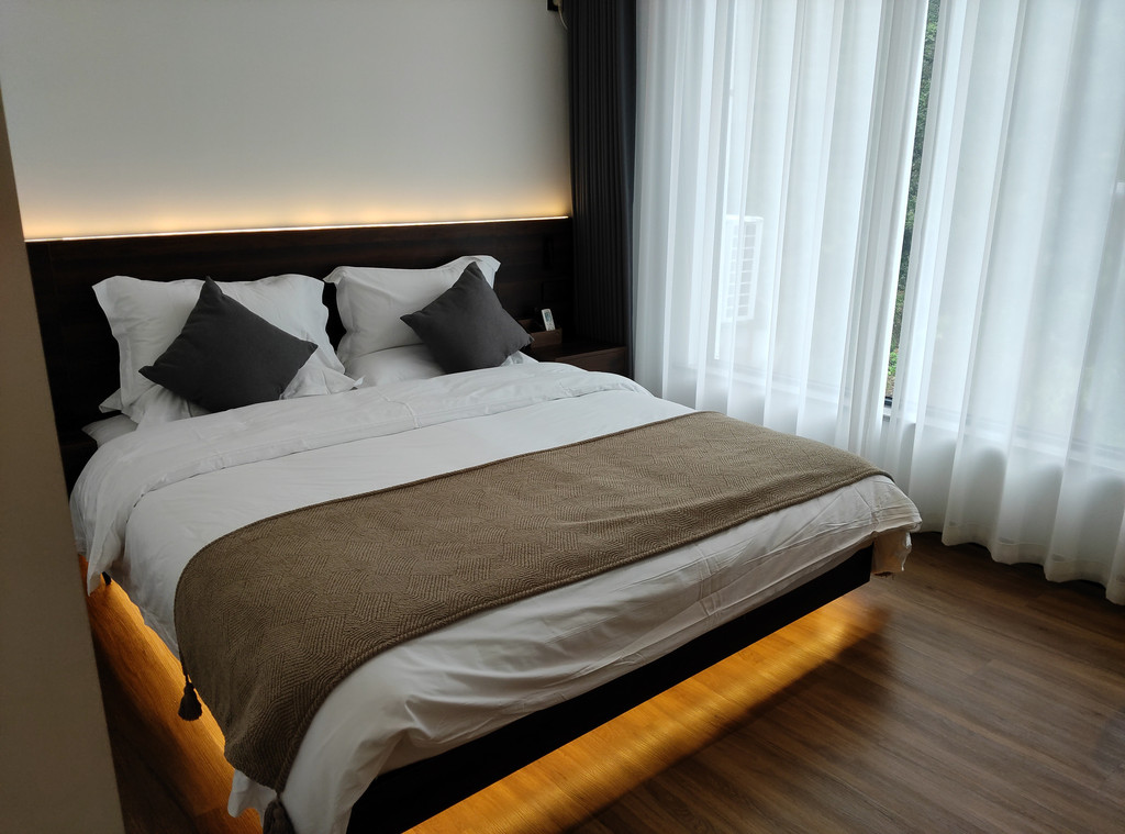 我们订的家庭房带露台,设施齐全,房间干净,特别适合躺房间休假放空。